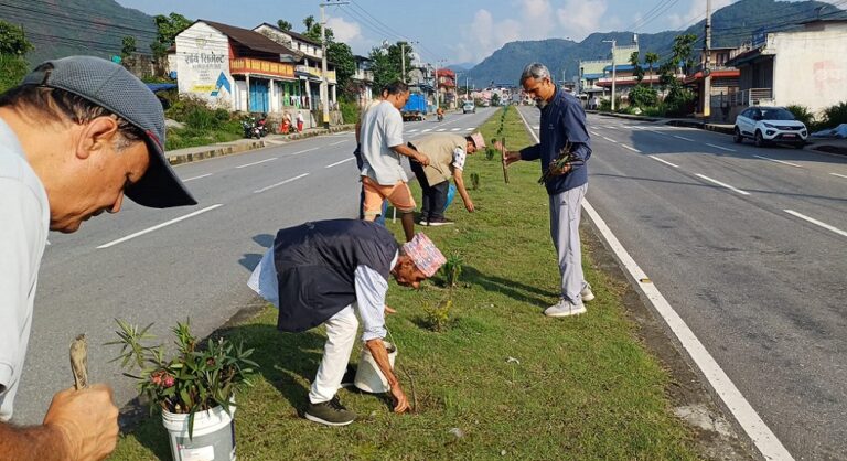 पोखरा। पोखराको जिरो किलोमिटर देखी हल्नचोक सम्म पुग्दा सडकको बिचको डिभाइडरमा हरिया धुपि र फुल...