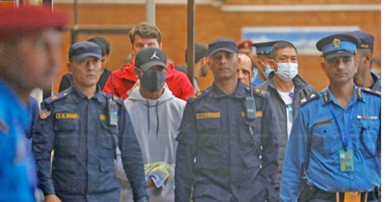 सन्दीपलाई अदालतमा हाजिर गराउँदाको तस्वीर । काठमाडौं । बलात्कार मुद्दामा जिल्ला अदालत, काठमाडौंले बुधबार क्रिकेटर...