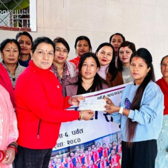 ७‘पर्वत कुस्मा नारी समूह’द्वारा क्यान्सर पीडित बालकको उपचारका लागि सहयोग