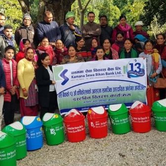 कामना सेवा विकास बैंकको सामाजिक काम गलकोटमा डस्टवीन वितरण