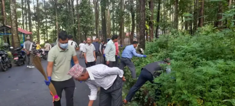 पर्वतमा एमालेले पुष्पलालको स्मृतिमा पर्यटकीय पार्कमा सरसफाई