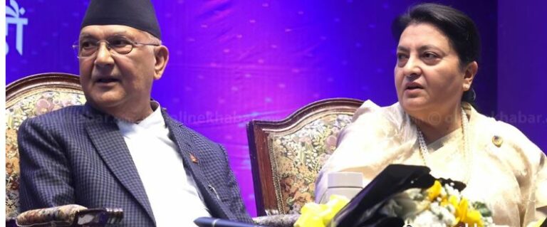 काठमाडौं । नेकपा एमालेका अध्यक्ष एवं प्रधानमन्त्री केपी शर्मा ओलीले पूर्वराष्ट्रपति विद्यादेवी भण्डारीसँग अब कुनैपनि...