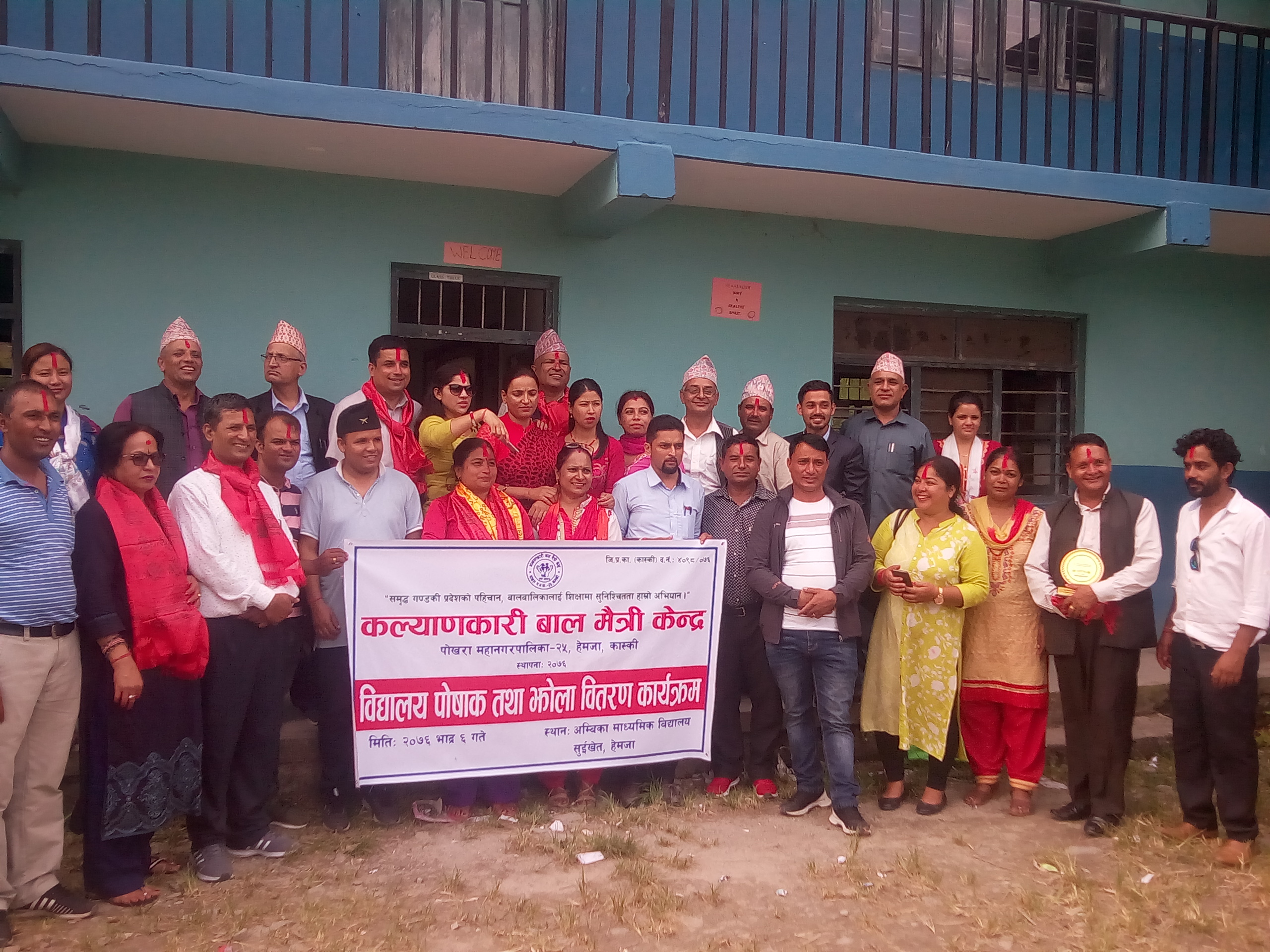 कल्याणकारी बाल मैत्री केन्द्र पोखरा २५ हेमजाको आयोजनामा हेमजामा अबस्थीत अम्बिका माध्यमिक बिद्यायलयमा एक कार्यक्रम आयोजना गरि बिद्यार्थीलाई बिद्यालय पोषक, झोला तथा जुत्ता बितरण गरेको छ । समृद्ध गण्डकी प्रदेशको पहिचान, बालबालिकालाई शिक्षामा सुनिश्चितता हाम्रो अभियान भन्ने मुल नाराका साथ स्थापित सस्थाले बिद्यायलयका २० गरिब बिद्यर्थीलाई सामाग्री बितरण गरेको हो ।