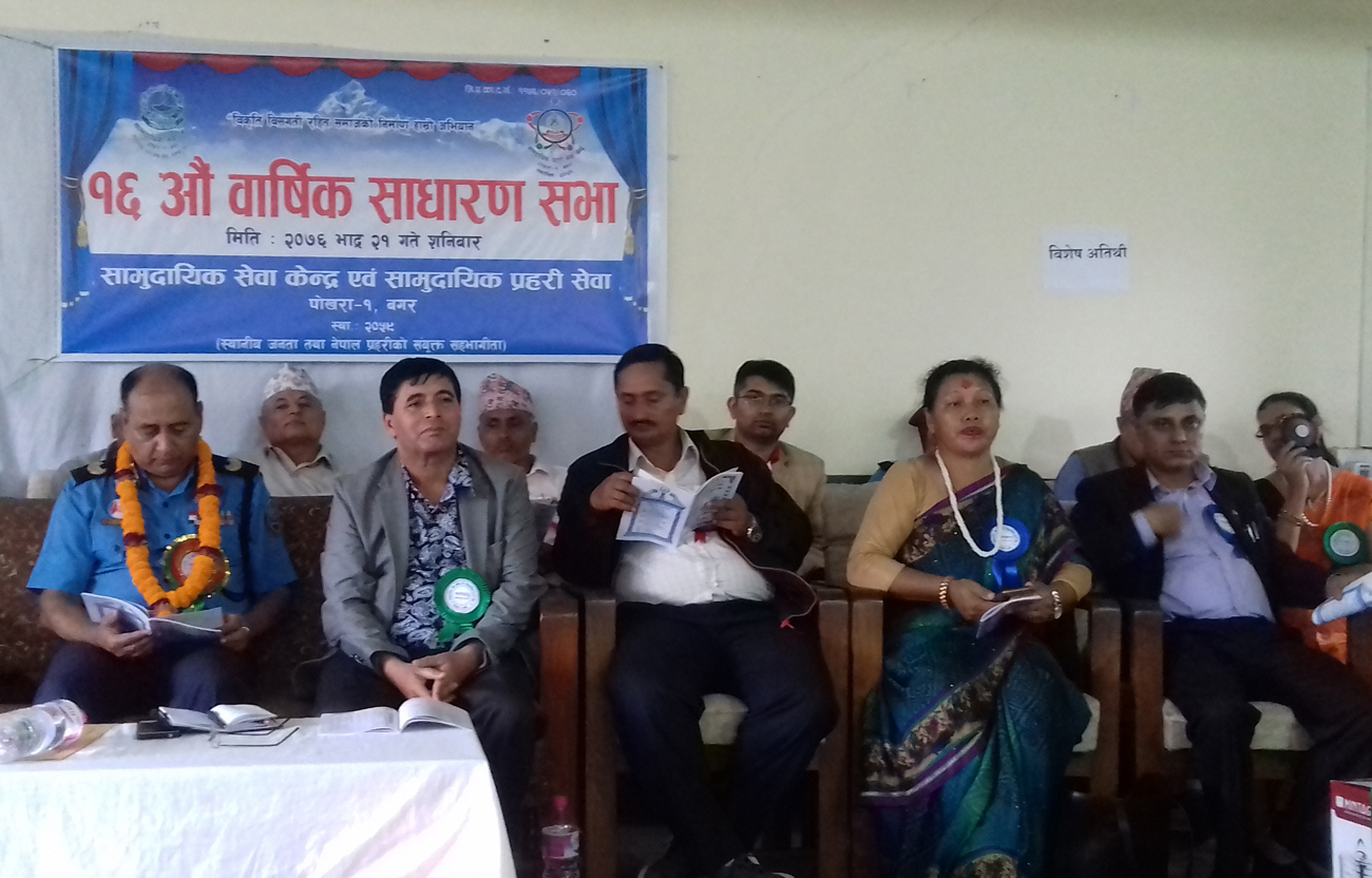 श्रीभद्र पौडेल, हेमजा, । सामुदायिक सेवा केन्द्र एवम् सामुदायिक प्रहरी सेवा पोखरा–१, बगरको १६ औं बार्षिक साधारणसभा शनिवार पोखरामा सम्पन्न भयो।