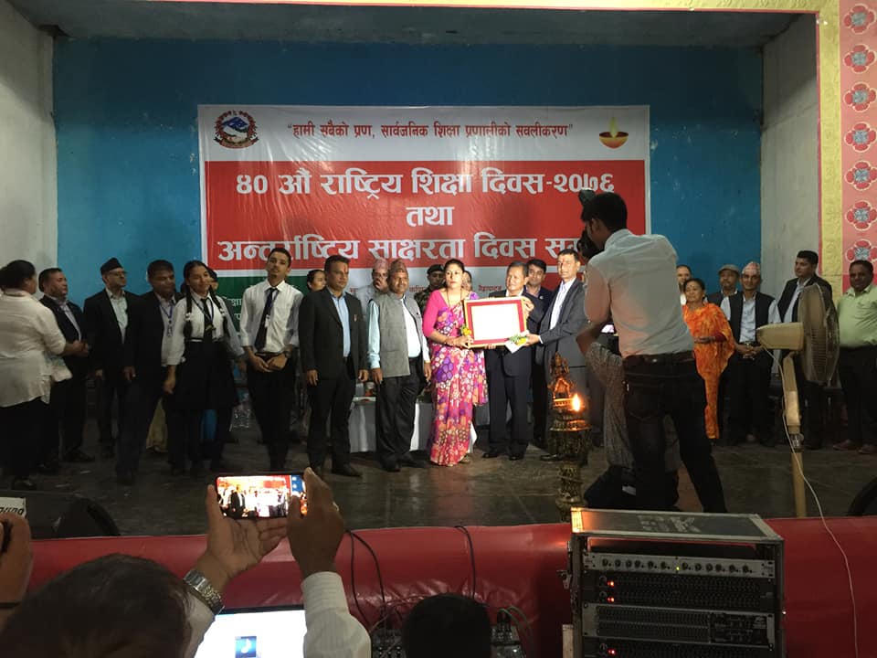 ४० औं शिक्षा दिवस तथा अन्तर्राष्ट्रिय साक्षरता दिवसका अवसरमा सामाजिक विकास मन्त्रालय शिक्षा विकास निर्देशनालय गण्डकी प्रदेशले आयोजना गरेको कार्यक्रममा विद्यालयलाई नगद ४० हजार सहित उत्कृष्टताको प्रमाणपत्र प्रदान गरिएको हो ।