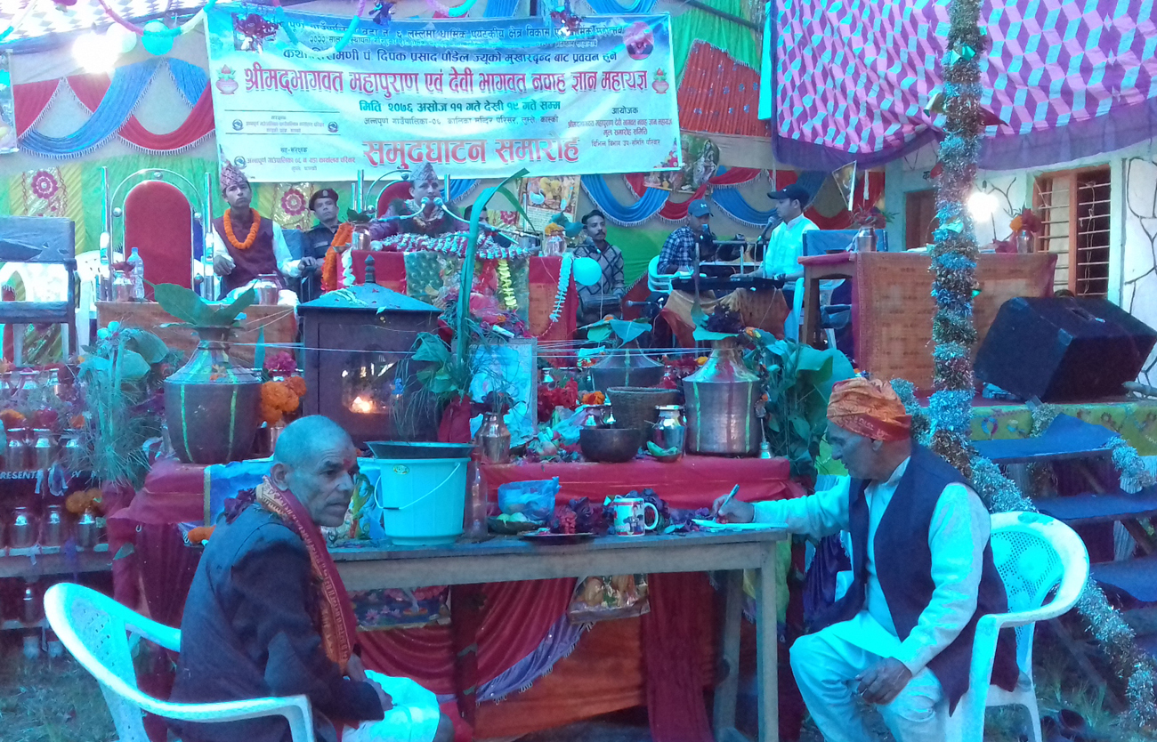 अन्नपूर्ण(लुम्ले),१२ असोज।कास्कीको अन्नपूर्ण गाउँपालिका ६ स्थित लुम्लेमा रहेको कालिका मन्दिर पुनःनिर्माण तथा संरक्षण प्रतिष्ठान सहयोगार्थ शनिवारदेखि सुरु श्रीमद्भागवत महापुराण एवं देवी भागवत नवाह ज्ञान महायज्ञ जारी रहेको छ ।महायज्ञ यहि असोज १९ गतेसम्म चल्नेछ । आइतवार भागवत वाचन गर्दै कथा शिरोमणि पं. दिपकप्रसाद पौडेलले मानिस विचार र कर्मले असल हुनुपर्ने भनाई राखे ।उनले हिन्दु धर्मको महत्वमाथि पनि प्रकाश पारेका थिए ।
