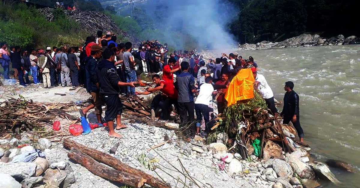 अरनिको राजमार्गअन्तर्गत सुकुटेमा भएको बस दुर्घटनामा ज्या न गुमाएकामध्ये सात जनाको आज सामूहिकरुपमा दाहसंस्कार गरिएको छ । उनीहरुको बाह्रबिसेस्थित भोटेकोशी नदीमा दाहसंस्कार गरिएको हो । दोलखाको शैलुङ गाउँपालिका–५ काटाकुटीका पाँच, शैलुङ माइत भएकी त्रिपुरासुन्दरी गाउँपालिकाकी एक महिला तथा उनको छोराको यहाँ सामूहिकरुपमा दाहसंस्कार गरिएको हो । शैलुङ गाउँपालिका–५ का रिकेश खडका, रत्नकुमारी राउत, उनका छोरा किरण, कविता राउत, रञ्जिता केसी, चमेली श्रेष्ठ र उनकी छोरी सायरानीको श्रेष्ठको सामूहिकरुपमा दाहसंस्कार गरिएको सो गाउँपालिकाका अध्यक्ष भरत दुलालले जानकारी दिनुभयो ।
