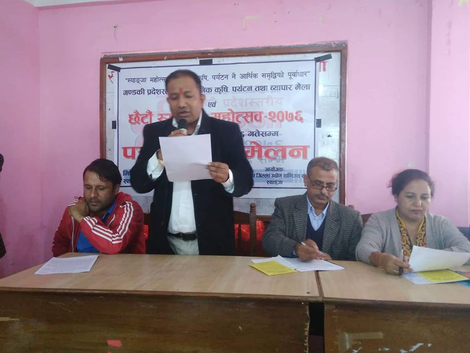 यसै पृष्ठभूमिमा स्याङ्जा जिल्लाको उच्च पहिचान सहित समग्र जिल्लाको अार्थिक स्तर उन्नतिको लागि यश स्याङ्जा जिल्ला उद्योग बाणिज्य संघले २०७६साल पौष ४गते देखि १६ गते सम्म जिल्ला सदरमुकामस्थित पुतलीबजार नगरपालिका-१ श्रवणकुमार खेलमैदान (मालेबगर)मा छैटौं स्याङ्जा महोत्सव २०७६गर्न लागेको संघका अध्यक्ष बिक्रान्त कुमार श्रेष्ठ सुवर्णले जानकारी दिनु भयो।