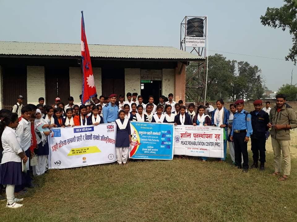कपिलबस्तु कृष्णनगर नगरपालीका वडा नं.२ मा रहेको श्री महेन्द्र माध्यमिक विद्यालयको भवनमा मधेश मानव अधिकार गृह माहुरी होमको आयोजना र इलाका प्रहरी कार्यालय कृष्णनगर कपिलबस्तुको सहजिकरणमा तथा शिक्षक, विधर्थी, माहुरी होमका प्रतिनिधी, PRC नेपाल कृष्णनगरका प्रतिनिधीहरु गरी ८०/९० जनाको सहभागीतामा “ उजुरी प्रक्रिया सम्बन्धी प्रहरी र विधार्थी संगको अभिमूखिकरण जनचेतनामुलक अन्तरक्रीया ” कार्यक्रम सम्पन्न गरीएको छ। उक्त कार्यक्रममा इलाका प्रहरी कार्यालय कृष्णनगरका कार्यालय प्रमुख प्रहरी निरिक्षक प्रताप पौडेल ले जनचेतना मुलक प्रशिक्षण दिए ।