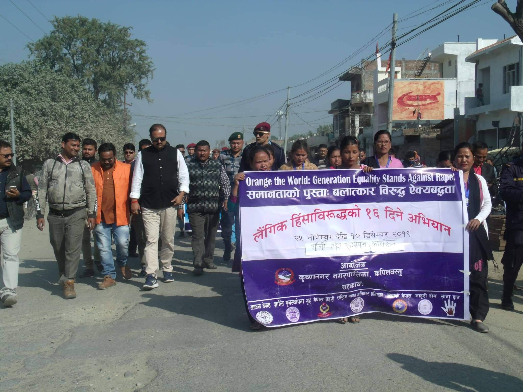 कृष्ण नगर नगरपालिका को आयोजना तथा आफन्त नेपाल,नेपाल प्रहरी शसस्त्र प्रहरी,शान्तीपुनर्स्थापना गृह,साना हात नेपाल लगाएत विभिन्न संघ सस्थाको सहकार्यमा बृहत् र्याली कार्यक्रम समापन भएको छ । कृष्णनगरका नगर प्रमुख रजत प्रताप शाहको मुख्य आतिथ्यमा उक्त कार्यक्रम समापन भएको थियो ।