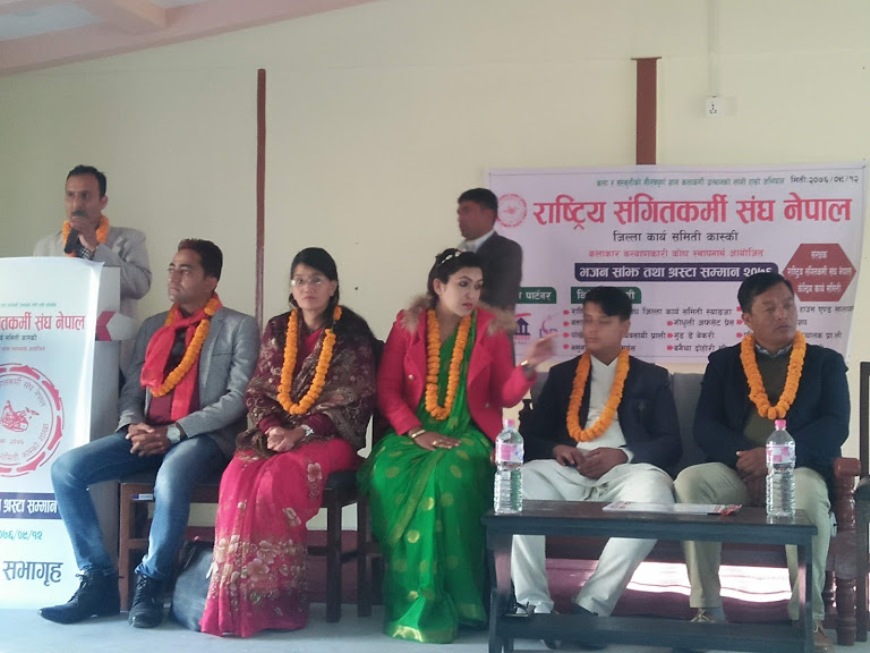 कार्यक्रममा गित संगीत क्षेत्रमा स्थापित वरिष्ठ गायक, सर्जक, संगीतकर्मीहरुलाई प्रजापति पराजुली, हरिदेवि कोईराला, हनिफ मियाँ, प्रकाश कटुवाल, पद्यराज ढकाल, विनित जोजिजु, सम्मरबहादुर गायक, लोकनाथ सापकोटा, निर्मल खत्रीलाई सम्मान गरिएको थियो ।सम्मानितहरुको तर्फबाट पद्यराज ढकालले मन्तव्य राखेका थिए भने कलाकारहरुले भजन संर्कितन गरेका थिए ।राष्ट्रिय संगीतकर्मी संघ कास्कीका अध्यक्ष आयुषजंग कार्कीको अध्यक्षतामा भएको कार्यक्रममा स्वागत वरिष्ठ उपाध्यक्ष शंकर वरालले र संचालन महासचिव ऋषिराम दाहालले गरेका थिए ।