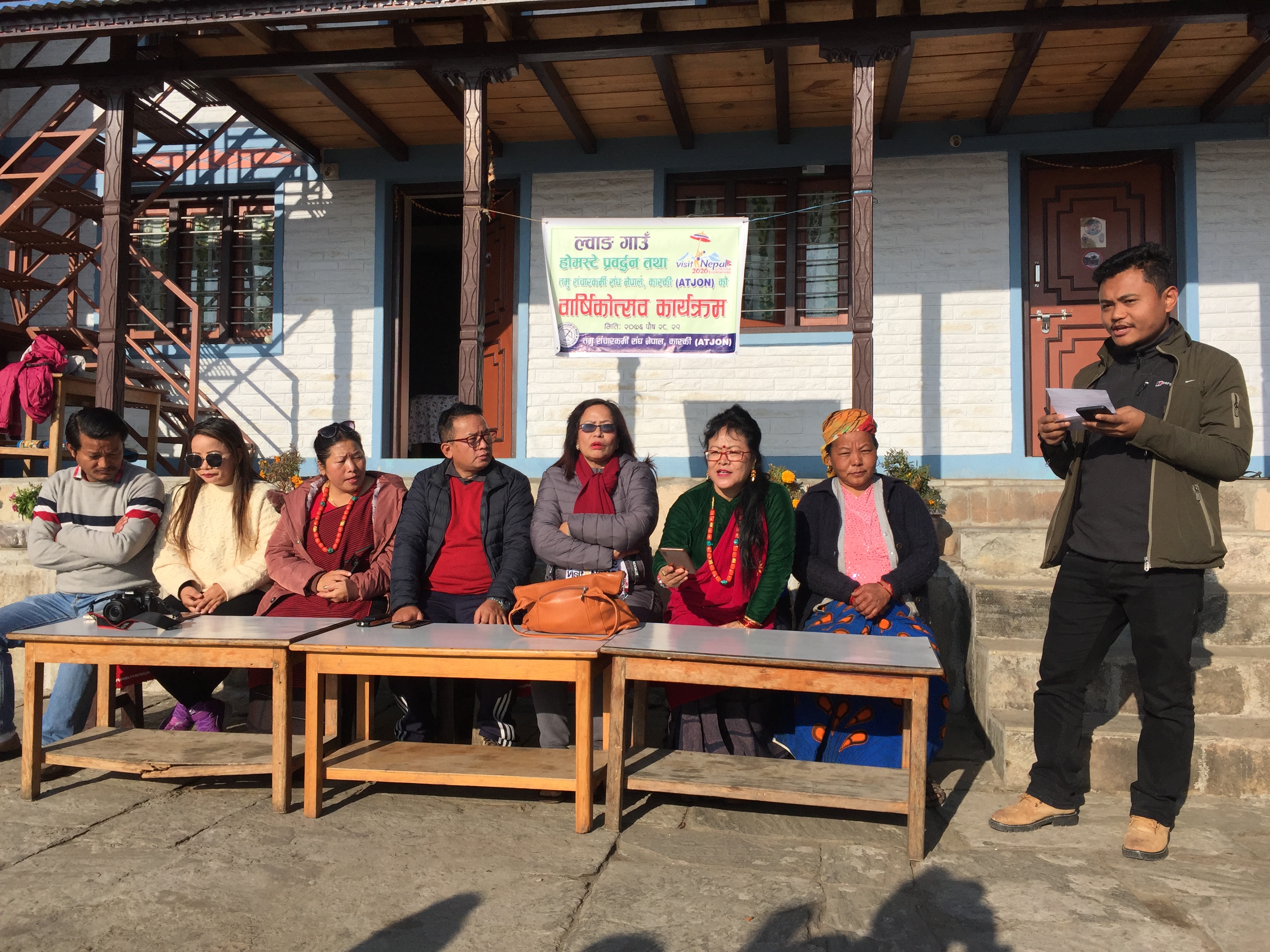होमस्टेको प्रर्वद्धन गर्ने उद्देश्यको साथको ल्वाङ गाँउमा सञ्चालित ल्वाङ सामुदायिक होमस्टेमा पुगेर वार्षिकोत्सव कार्यक्रम गरेको संघ कास्कीकी अध्यक्ष शान्ति गुरुङले बताईन् । कार्यक्रमका प्रमुख अतिथी प्रदेश सांसद मिना गुरुङले तमु सञ्चारकर्मी संघको उत्तोरतर प्रगतीको कामना सहि गर्दै होमस्टेको बिकाशका लागि आफ्नो तर्फबाट सक्दो सहयोग रहने बताईन् ।