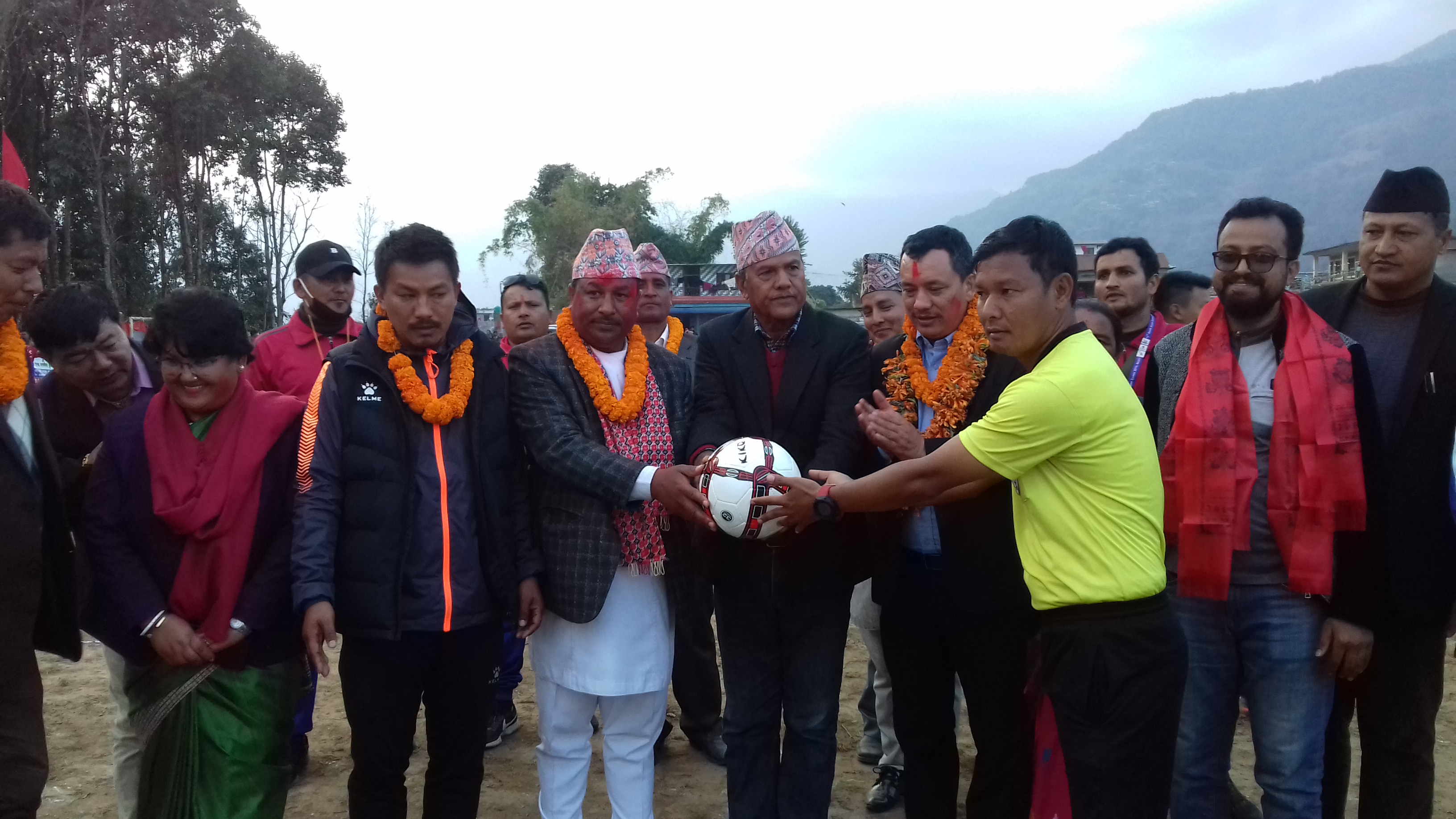 श्रीभद्र पौडेल हेमजा, । माछापुच्छे« गाउँपालिका–४, लाहाचोक स्थित माछापुच्छे« त्रिशक्ति युनाईटेड क्लवको आयोजनामा बुधवार(आज)देखि गण्डकी प्रदेश क्लव स्तरीय खुल्ला ११ ए साइड फुटवल प्रतियोगिता सुरु भएको छ । प्रतियोगिताको शुभारम्भ गर्दै युवा तथा खेलकुद मन्त्री जगतबहादुर विश्वकर्माले मन्त्रालयले सबै स्थानीय तहमा एक खेलमैदान बनाउने तयारी गरेको स्पष्ट पार्दै सोही अनुसार लाहाचोक खेलमैदानको स्तरउन्नती गरिने बताए ।उनले स्तरउन्नतीका लागि यहि माघ महिना भित्रै रु.५० लाख विनियोजन गर्ने बचनबद्घता पनि जनाए ।