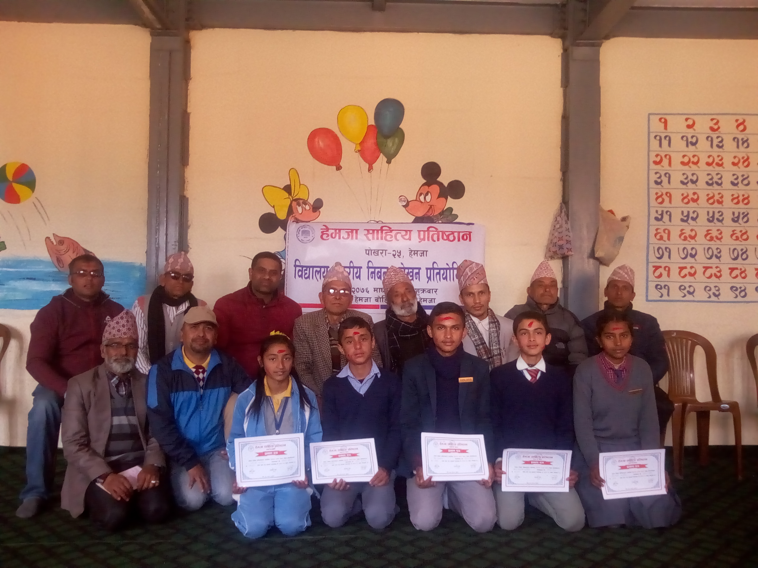 गोबिन्द तिमिल्सिना, हेमजा ।हेमजा साहित्य प्रतिष्ठानको आयोजनामा हेमजामा बिद्यालय स्तरीय निबन्धलेखन प्रतियोगिता सम्पन्न भएको छ । प्रतियोगितामा केफ मा.बि का सौगात गौतम प्रथम, भूमेश्वर माविका नवराज ढुंगाना द्धितिय, धवलागिरि बोर्डिङकी सुरक्षा परियार तृतीय तथा स्नो भ्यूकी सम्झना भण्डारी र हेमजा बोर्डिङका अनिष दाहाल सान्त्वना भए । बिभिन्न बिद्यालयका ३२ बिद्यर्थीको सहभागिता रहेको प्रतियोगितामा श्रीभद्र पौडेल र लिलाधर अधिकारी निर्णायक रहेका थिए ।