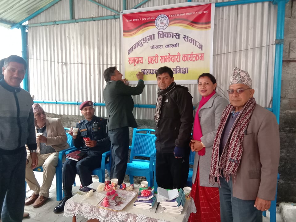 पोखरा । नागढुङ्गा विकास समाजको आयोजनामा समुदाय प्रहरी साझेदारी कार्यक्रम अन्तर्गत छलफल तथा समिक्षा कार्यक्रम सम्पन्न भएको छ । कार्यक्रमको उद्घाटन गर्दै प्रमुख अतिथि पोखरा महानगरपालिका वडा नम्वर ८ का वडा अध्यक्ष रुद्रनाथ बरालले समाजले गरेका गतिविधिमा वडाको पनि साथ र सहयोग रहने प्रतिवद्धता व्यक्त गर्नुभयो ।
