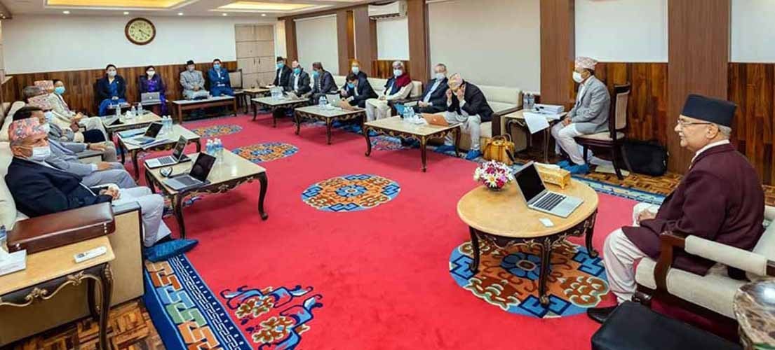 मन्त्रिपरिषद् बैठकअघि ओलीले राष्ट्रपति विद्यादेवी भण्डारीसँग भेटघाट गरेका कारण आईतबार साँझको बैठकलाई महत्वका साथ हेरिएको छ । मन्त्रिपरिषद् बैठकमा कोरोना भाइरसको संक्रमणको जोखिम नियन्त्रणका लागि सरकारले गर्नुपर्ने कामका विषयमा छलफल भइरहेको जनाइएको छ ।