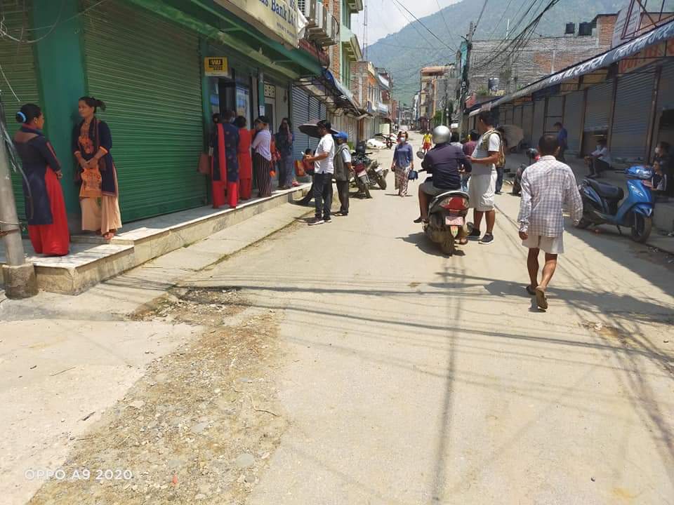 मान्छेहरु निर्धक्क डुलिरहेकाछन्, टोलटोल मा जम्मा भएर गफ पनि लडाएका छन्, बैंक हरुमा पनि भिडभाड उस्तै छ,बिना पासका सबारीसाधन पनि गुडिरहेका छन्, बजार भित्र बाहिरबाट अबत-जावत पनि भईरहेको छ, साना चिया पसल बाहेक पहुँच भएका होटल पनि खुलिरहेका छन् र अत्यावश्यक पसल बाहेक अन्य पसलहरु पनि खोलेर व्यापार गरिरहेका छन् के यसैलाई नै हो त लकडाउन भन्ने ? । मोवाईल पसल, शृंगारपसल र फेन्सी पसलहरु पनि दैनिकी जसो खुलिरहेका छन् । हाम्रो हिड्ने बाटो यहि हो भन्दै सानो सटर खोलेर भित्र ७/८ जना छिराएर व्यापार पनि गरिरहेका छन् के यस्तो गर्दा कोरोना नलाग्ने हो र ? यहाँ कसैलाई कोरोनको त्रास छैन ।बिशेष गरि शिवालय चोक देखि प्रगतिचोक सम्म यस्ता दृश्य दिनहु देख्न सकिन्छ ।