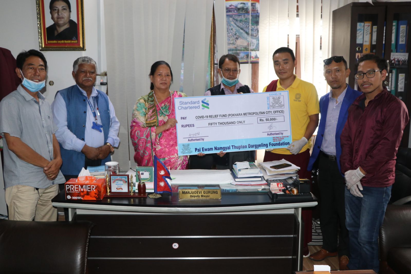 पाल ऐहाम नामग्याल गुम्बा स्कुलका प्रध्याना ध्यापक ग्याचो गुरुङ र सोनाम लामाले आफुहरुको स्कुलले कोरोनालाई मध्येनजर गरी स्थापना गरिएको कोषमा १ लाख २० हजार नगद र प्राकृतिक प्रकोप पहिरोमा परि घरबार गुमाएका ५ सय परिवारलाई खाद्यान्न सामाग्री वितरण गर्ने आफुहरुको लक्ष्य रहेको वताए । पोखरा ३२ र २६ संगै कास्कीका अन्य क्षेत्रमा पहिरोमा परेका परिवारहरुलाई आफुहरुले वर्षायाम नसिद्धिय सम्म खाद्यान्न सामाग्री वितरण गर्ने समेत उनीहरुको भनाइ रहेको थियो । हिमाली जिल्ला मुस्ताङको लोमन्थाङ गाउपालिका वडा नम्बर ३ मा रहेको पाल ऐहाम नामग्याल गुम्बा स्कुलले हिउदको समयमा पोखरामा पोखरा महानगरपालिका १८ खपौदीमा स्कुल सञ्चालन गर्दै आएको छ ।