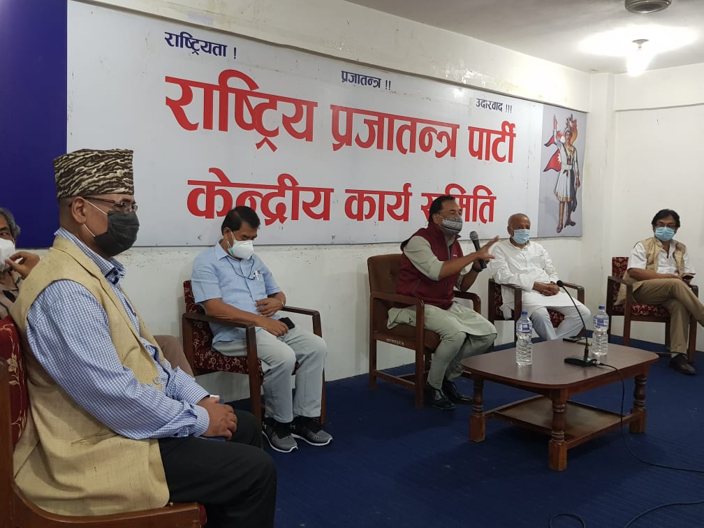 मुलुकमा विकृति, विसंगति, भ्रष्टाचारले जनता वाक्क दिक्क भएको र नयाँ वैकल्पिक शक्तिको खोजिमा जनता रहेकोले त्यो जनताले खोजेको विकल्प राप्रपा बन्ने गरी आगामी दिनमा कार्य गर्नु आजको आवश्यकता भएको थापाको तर्क थियो । बैठकमा पार्टीका नेताहरु दिपक बोहोरा, बुद्धिमान तामाङ्ग, राजीव पराजुली, राजेन्द्र लिङदेन, निरञ्जन थापा, भास्कर भद्रा, चन्द्र बहादुर गुरुङ्ग लगायतको उपस्थिति रहेको सचिवालय सदस्य राजाराम बर्तौलाले जानकारी दिए । यस अघि जिल्लामा रहेका नेताहरुलाई भर्चुअल बैठक गरेका थापाले छलफल अन्तरक्रियालाई आगामी दिनमा पनि जारी राख्नु हुने बर्तौलाले बताए ।