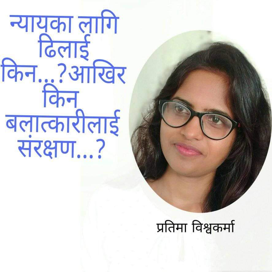 हाम्रो देश नेपालको निर्मला पंथ,गुल्फसा खातून लगायत कैयो बहिनीले बलत्कार जस्ता घटनाको शिकार भएर आफनो ज्यान गुमाएकि आज सम्म न्याय पाएकि छैन्न् । आखिर न्यायको लागि ढिलो किन् ?