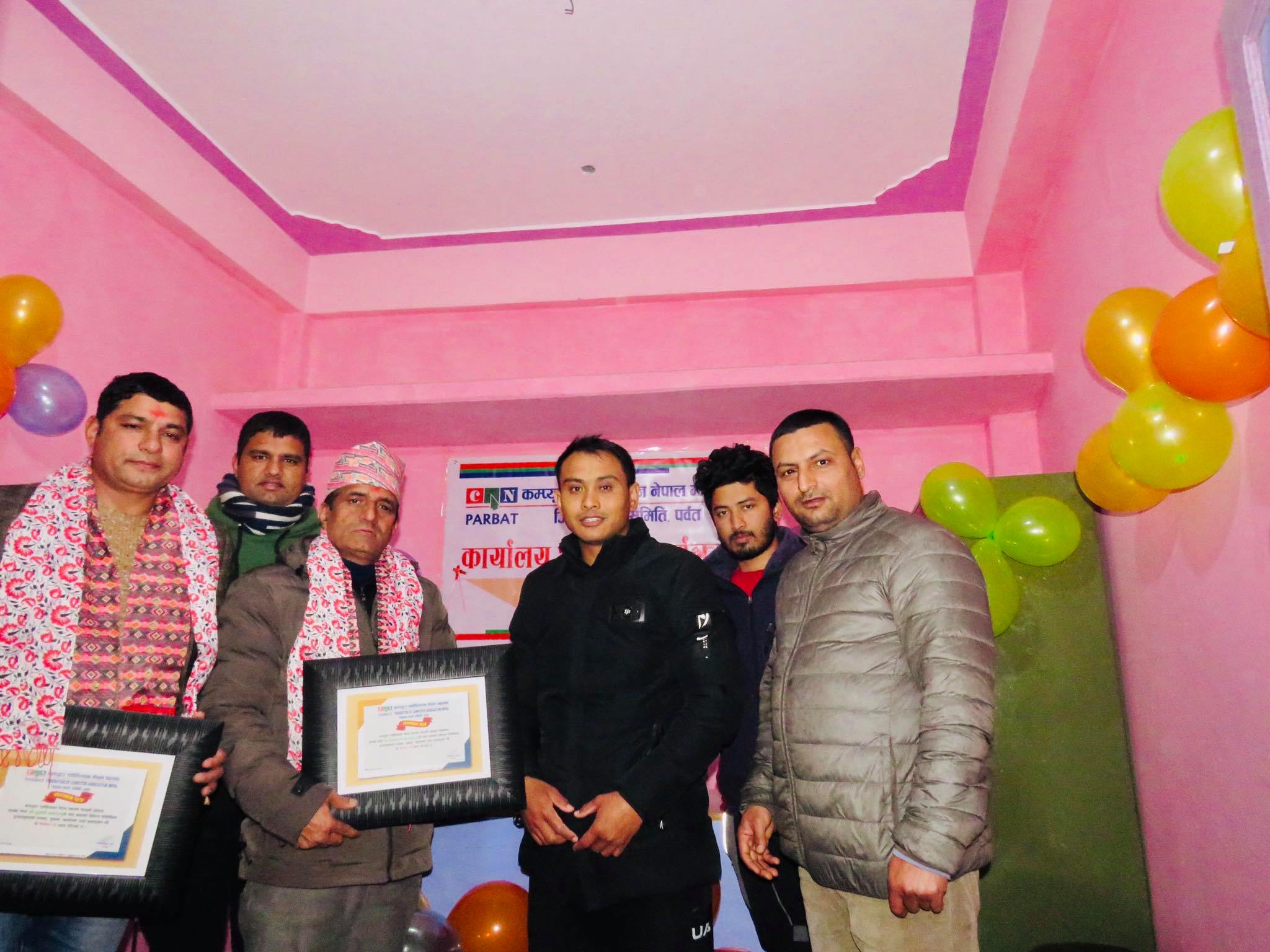 उक्त कार्यालयमा ४० हजार रुपैया बराबरको फर्निचर क्यान गण्डकीको अध्यक्ष तुलसी पाण्डे र क्यान गण्डकीको निबर्तमान अध्यक्ष चिन्तामणी बास्तोलाले गर्नु भएको थियो भने कार्यालयको ब्यवस्थापनको लागि कोठा ३ बर्षको लागि पर्वत क्यानका निबर्तमान अध्यक्ष गोपिनाथ तिमिल्सिनाले निशुल्क उपलब्ध गराउनु भएकोछ ।