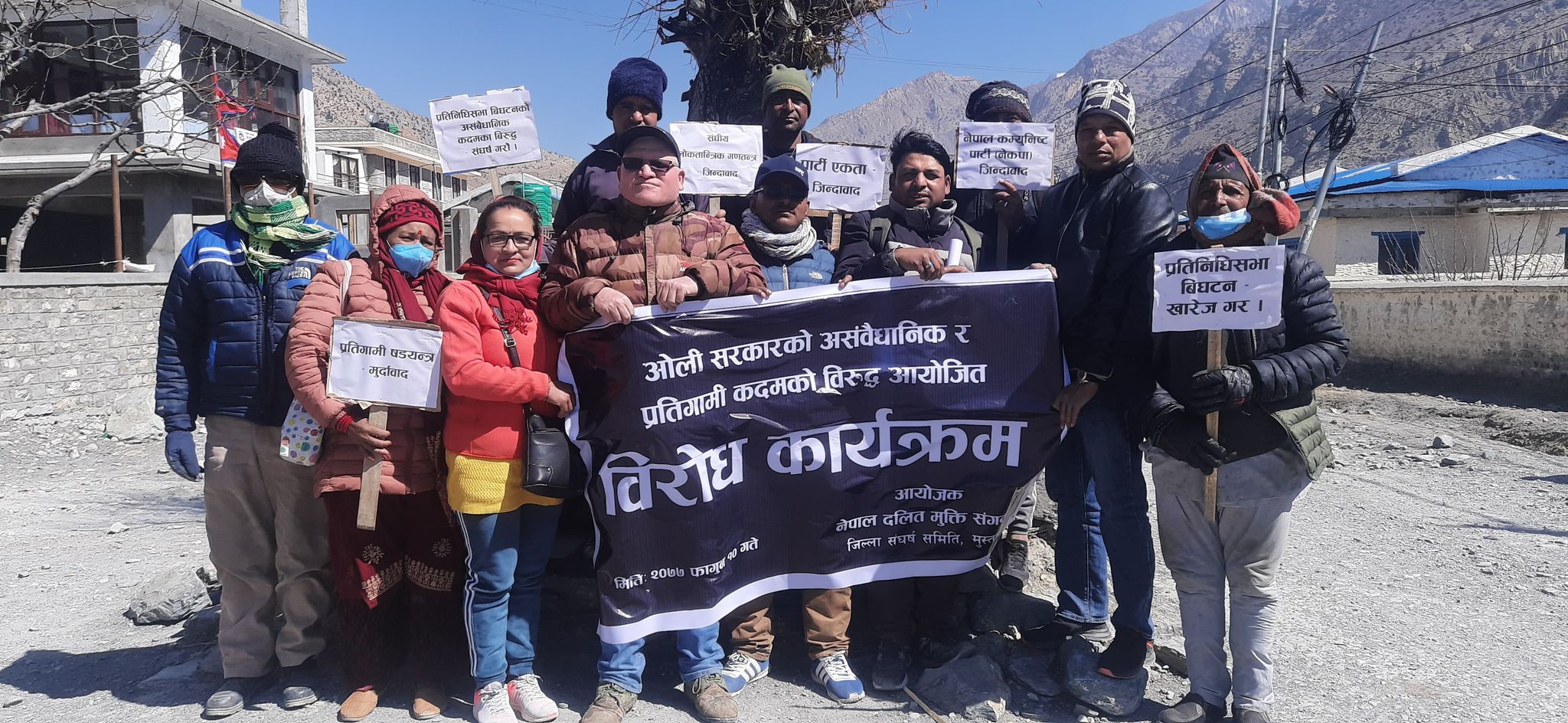 नेकपा –प्रचण्ड÷माधव निकट दलित मुक्ति संगठनले प्रधानमन्त्री केपि शर्मा आलीले गरेको असंवैधानिक र प्रतिगामी कदमको बिरुद्ध मुस्ताङ सदरमुकाम जोमसोममा बिरोध प्रर्दशनसहित कोणसभा आयोजना गरेको जनाएको छ ।