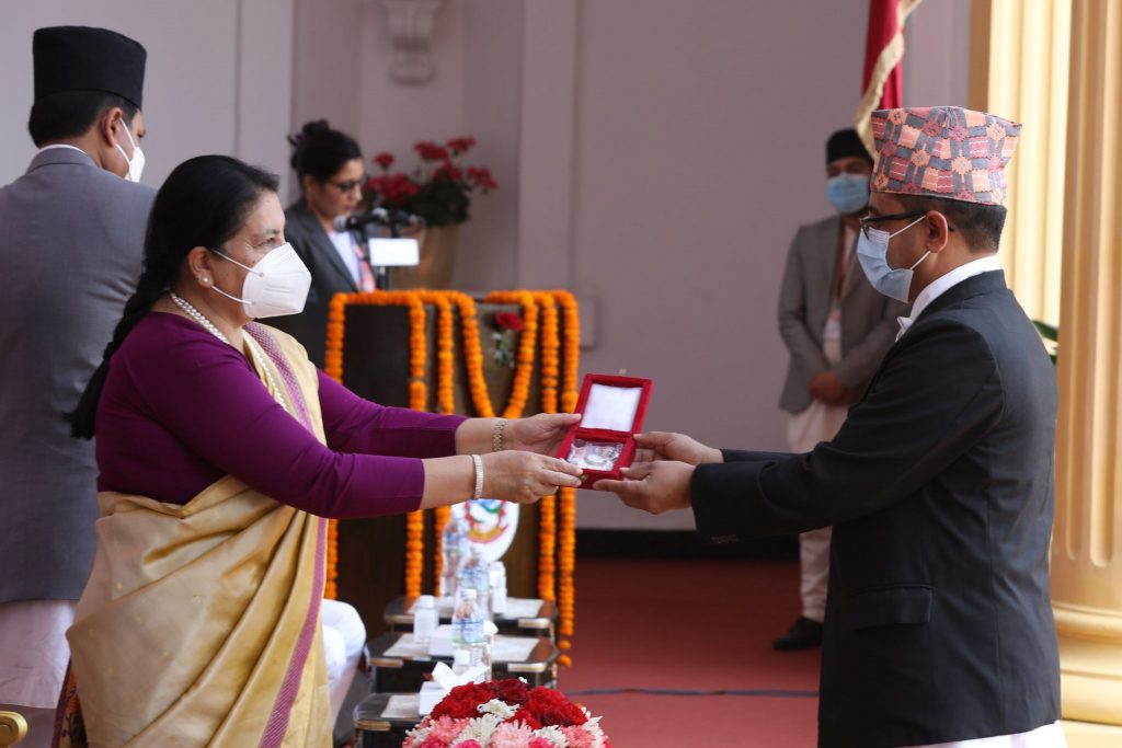 पर्वत / न्युज डबली अनलाईन न्युज पोर्टलका सम्पादक दुर्गाप्रसाद शर्मा जनसेवाश्री पञ्चम पदकबाट बिभुषित हुनुभएको छ । राष्ट्रपति भवन शितल निवासमा शुक्रबार आयोजित बिशेष समारोहमा शर्मालाई राष्ट्रपति बिद्यादेबी भण्डारीलाई पत्रकार शर्मालाई बिभुषित गर्नुभएको हो ।