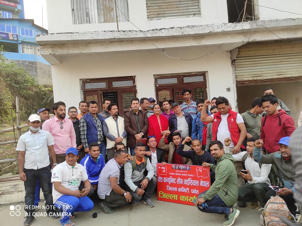 पर्वत । सर्बोच्च अदालतले नेकपा एमाले र माओवादी केन्द्र नामका पार्टीहरु ब्युताएपछि संगठनमा माओवादी केन्द्र तिब्र रुपमा अगाडी बढेको छ । यसै क्रममा पर्वतमा माओवादी केन्द्रको सहायक संगठन वाईसिएल नेपाल ब्युतिएको छ र वाईसिएल नेपालले आफ्नो जिल्ला सम्मेलन गर्नको लागि ५५ सदस्य कार्यसमिति घोषणा समेत गरेको वाईसिएल नेपाल नेता सौगात आचार्यले सुचनाकेन्द्र डटकमलाई बताएका छन् ।