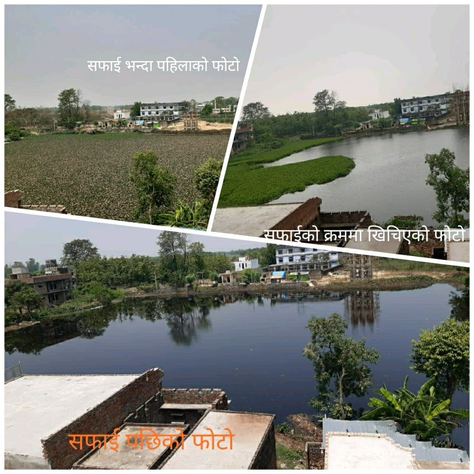 लगभग तीन बिगहा क्षेत्रफलमा फैलिएको उक्त सार्वजनिक पोखरी सर सफाई क्रममा रोजगार सेवा केन्द्रको वेरोजगारमा सुचिकृत भएका विभिन्न वडाका करिब ५० जनाले तिस दिन रोजगारीको अवसर पाएका छन् ।