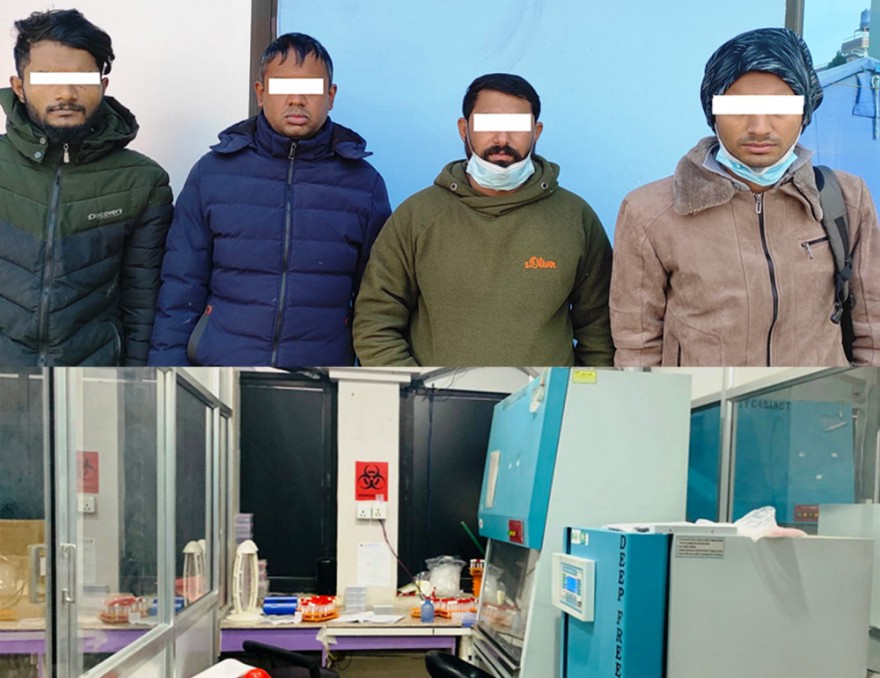 प्रहरीले नागरिक हस्पिटलका कर्मचारी धनुषा विदेह नगरपालिका–४ घर भई ललितपुर ग्वार्को बस्ने २५ वर्षीय रोशनकुमार छिट्टानलाई ८ थान नक्कली पीसीआर परीक्षण रिपोर्टसहित विमानस्थल अगाडिबाट पक्राउ गरिएको महाशाखा प्रवक्ता एसपी कृष्णप्रसाद कोइरालाले जानकारी दिए । सोही अस्पतालका ल्याब प्रबन्धक सर्लाही बलरा नगरपालिका–७ घर भई मध्यपुर थिमि कौशलटार बस्ने २४ वर्षीय प्रसन्नकुमार झा पनि ल्याबबाटै पक्राउ परेका छन् ।