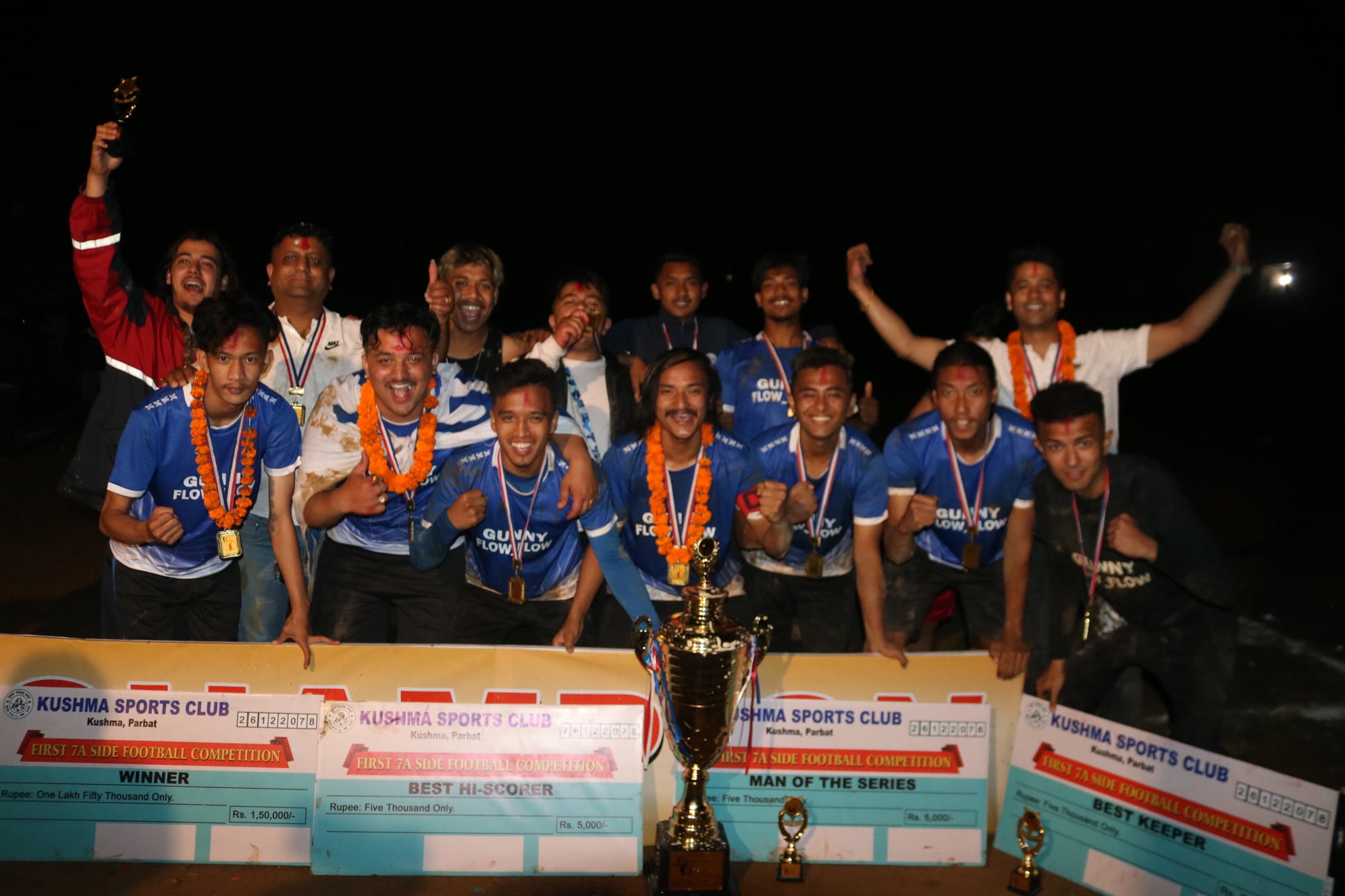 गोबिन्द, पर्बत । कुश्मा स्पोर्ट्स क्लबद्वारा आयोजित गण्डकी प्रदेश स्तरीय खुल्ला कुश्मा स्पोर्ट्स पर्यटन कप सेभेन ए साइड फुटबल प्रतियोगिताको उपाधि गन्य एफ सि ले उचाल्यो । हिजो शनिबार भएको फाईनल खेलमा नेपाल तरुणदल नाग्लिबन लाई १ का विरुद्ध ४ गोल गर्दै गन्य एफ सि ले कुश्मा स्पोर्ट्स पर्यटन कप सेभेन ए साइड फुटबल प्रतियोगिताको उपाधि उचाल्न सफल भएको हो । निकै रोमान्चक र प्रतिस्पर्धात्मक खेलमा दुवै टोलि बाट आक्रामक खेल प्रस्तुत गरे पनि गन्य एफ सि ले जित निकाल्न सफल भयो ।