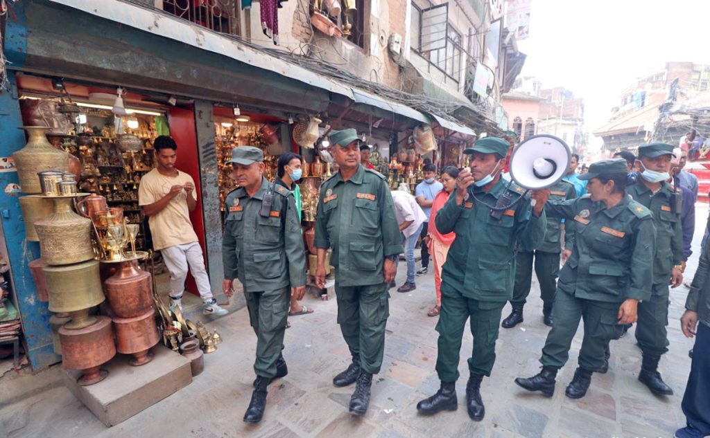 काठमाडौं । काठमाडौं महानगरपालिकाले १ साउनमा सूचना निकालेर ३५ दिनपछि सुरु गरेको महानगरभित्रका अनधिकृत संरचना हटाउने अभियान जारी छ । बानेश्वरको वेसमेन्ट खाली गरेर सुरु भएको यो अभियान फुटपाथ र पार्किङ व्यवस्थापनदेखि मापदण्ड विपरीतका बोर्डहरू हटाउनेसम्म पुगेको छ । यसक्रममा महानगरले सहरको मध्य भाग इन्द्रचोक क्षेत्रको अव्यवस्थित पार्किङ र पसलहरू हटाइरहेको छ । मंगलबार इन्द्रचोकदेखि असनसम्मका गल्लीका पसलले बिक्रीका लागि जथाभावी राखेका सामान महानगर प्रहरीले हटायो । मानिस हिंड्ने ठाउँमा फिंजाइएका भाँडाकुँडा, खेलौना, फेन्सी आदि पसलका सामान हटाइएको महानगर प्रहरी प्रमुख राजु पाण्डेले बताए । महानगर प्रहरीले असन चोकको दुई ट्रान्सफर्मरबीच रहेको टहरा पनि हटाएको छ । पूजा सामग्रीको पसल राखिएको उक्त टहरा हटाउँदा केही स्थानीयले विरोध गरेका थिए ।