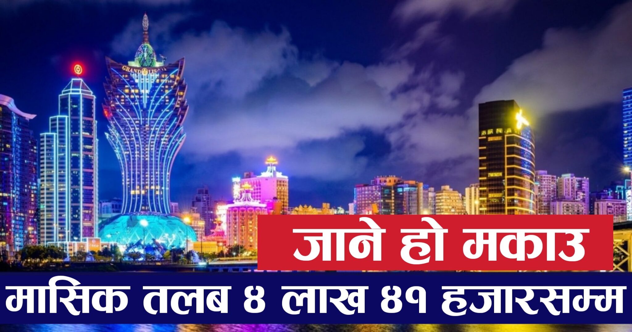 उत्कृष्ट तलब सुबिधा सहित मकाउको राम्रो कम्पनीमा नेपालीहरुको लागी वैदेशिक रोजगारीको अवसर आएको छ । मकाउको राम्रो मानिने GRAND LISBOA MACAU कम्पनिबाट बैदेशिक रोजगारिको लागी नेपाली श्रमिकको माग आएको छ ।