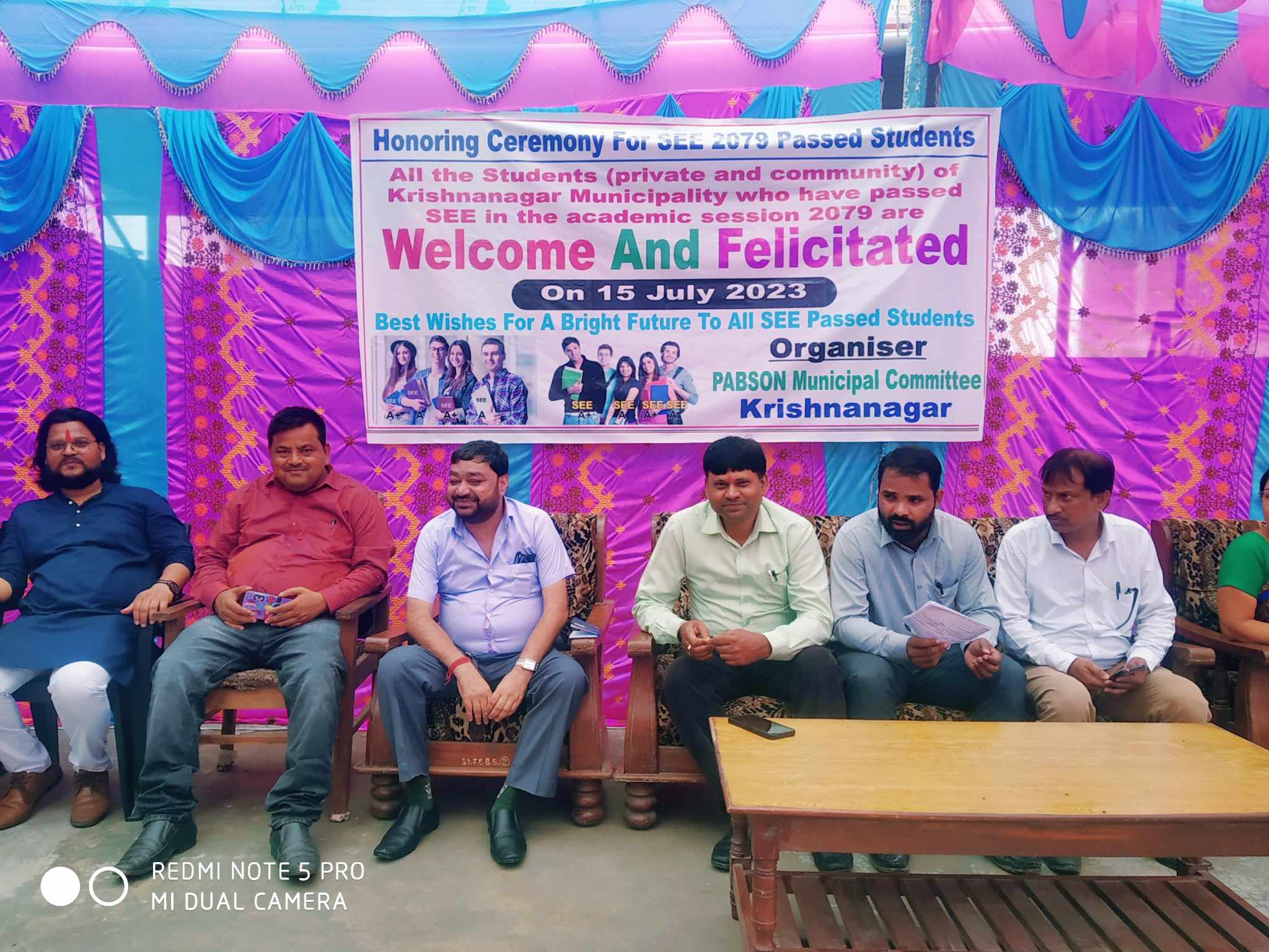 कार्यक्रममा विद्यार्थी हरूलाई खादा माला लगाई सम्मान गरि कोसेली समेत प्रदान गरिएको थियो। कार्यक्रममा कृष्णनगर क्षेत्रका पचास बढी विद्यार्थी लाई सम्मान गरिएको थियो। कार्यक्रममा विद्यार्थीका अभिभावक हरूको उपस्थित थियो।