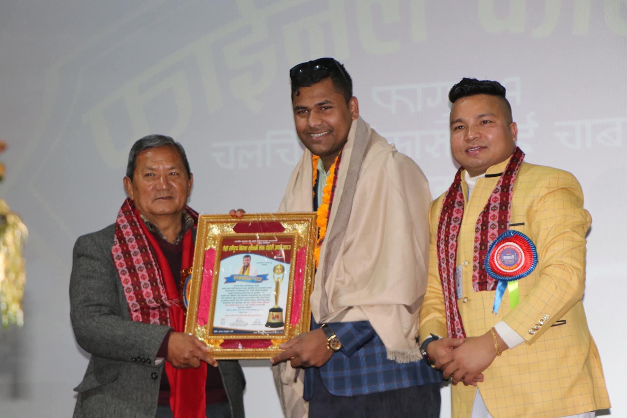 काठमाडौं । राष्ट्रिय लोक सञ्चारकर्मी नेपालका केन्द्रीय सदस्य तथा कान्तिपुरपाटी संचालक कविराज ढकाल लोक पत्रकारिता सम्मान २०८० बाट सम्मानित भएका छन्।मंगलबार चलचित्र बिकास बोर्डको सभाहल चाबहिलमा स्वर्गीय कल्पना गैरे स्मृती फाउण्डेशनको सहयोगार्थ बिशाल मुभिज प्रालि अनामनगर द्धारा आयोजित तेस्रो राष्ट्रिय बिशाल लुम्बिनी लोक दोहोरी अवार्ड २०८० को फाईनल कार्यक्रमा प्रमुख अतिथि गण्डकी प्रदेशको संस्थापक मुख्यमन्त्रीमा पृथ्वी सुब्बा गुरुङबाट ढकाल सम्मानित भएका हुन।