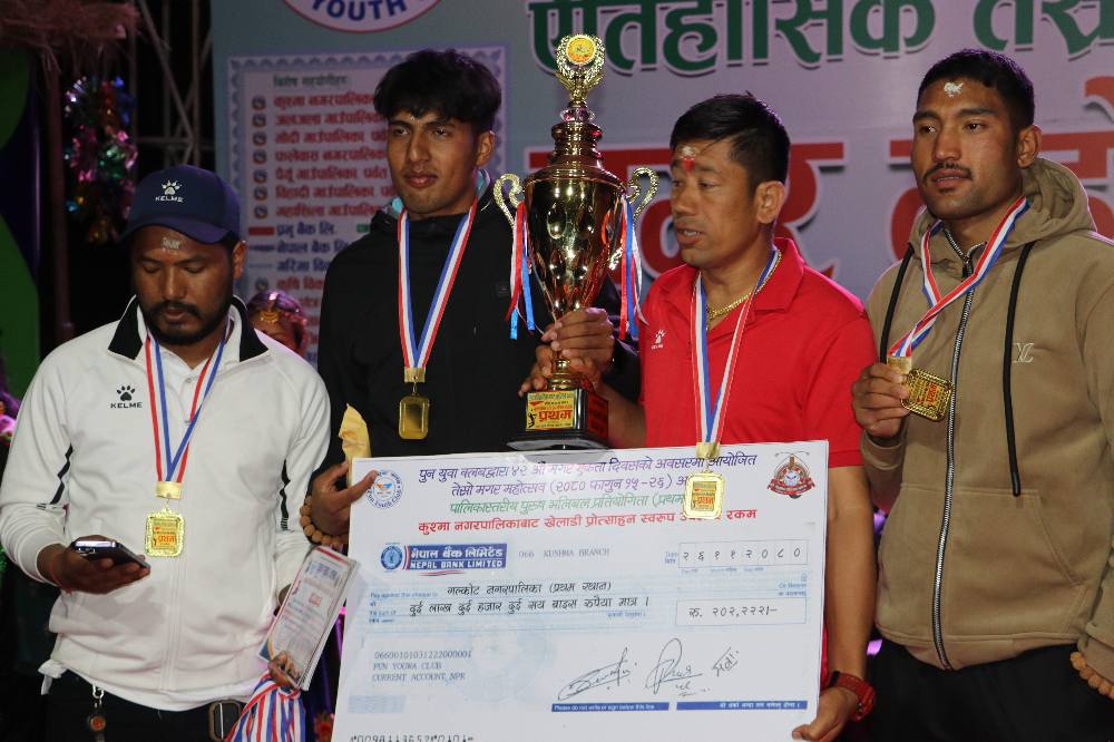 यो जित संगै गलकोट नगरपालिकाले सर्बाधिक पुरस्कार २,०२,२२२/ (दुईलाख दुईहजार दुईसय बाईस रुपयाँ, सिल्ड मेडल र प्रमाणपत्र) हात पर्यो भने दोस्रो हुने कुश्मा नगरपालिकाले १,०१,१११/ (एकलाख एकहजार एकसय एघार रुपयाँ सिल्ड मेडल र प्रमाणपत्र) प्रप्त गर्यो । त्यस्तै तेस्रो स्थान भएको फलेबास नगरपालिकाले नगद ५०,१११/ (पचासहजार एकसय एघार रुपयाँ सिल्ड मेडल र प्रमाणपत्र) प्रप्त गरेको खेल संयोजक होम पुनले हाम्रो सूचना केन्द्र डटकम लाई जानकारी गराउनु भयो ।