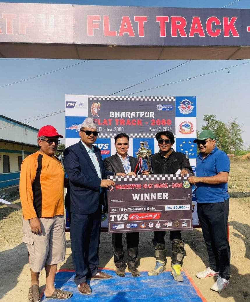 बागमती अटोमोबाइल्स एसोसिएसन र नेपाल मोटरस्पोर्टस् क्लवको संयुक्त आयोजनामा भएको यस भरतपुर फ्ल्याट ट्रयाक रेसकोसुरुवात नेपाल अटोमोबाइल्स एसोसिएसनका उपाध्यक्ष अनिल कुमार बराल र बागमती अटोमोबाइल्स एसोसिएसनका अध्यक्ष राजन पियाको ग्रिन फ्ल्याग अफबाट भएको थियो। टिभियास रेसिब को आर्थिक सहयोगमा भएको यस प्रतियोगितामा दिपेश तामाब प्रथम, विशाल दोर्जे तामाब द्वितीय र कुशल दुलाल तृतीय भएका थिए ।