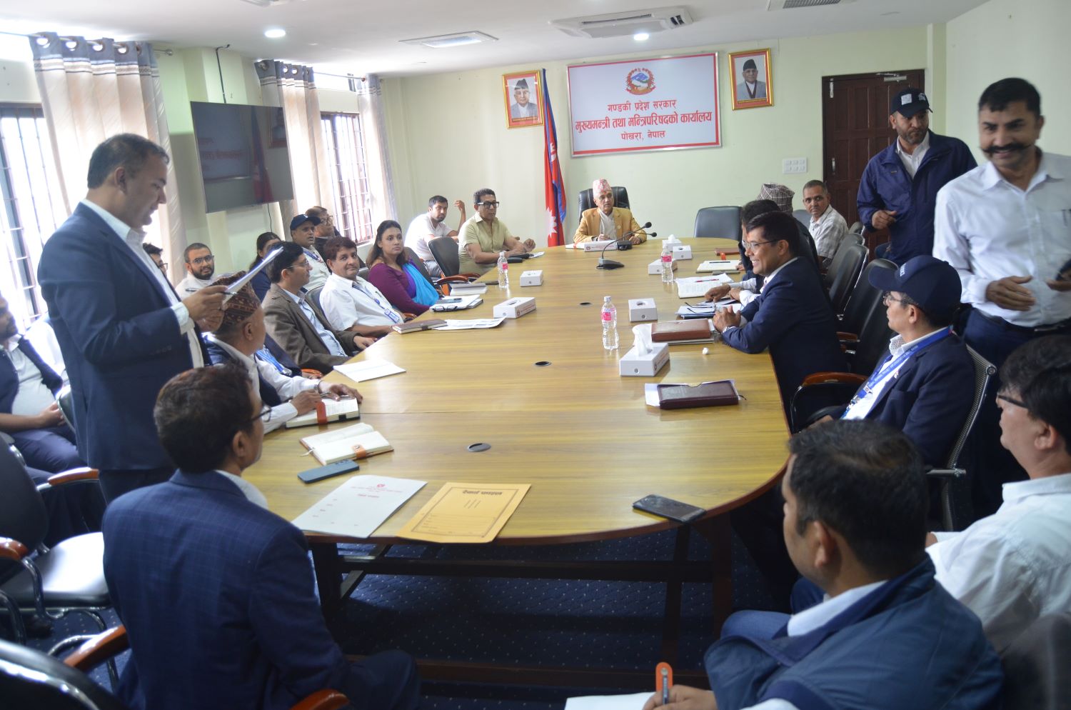 पोखरा । गण्डकी प्रदेशका मुख्यमन्त्री खगराज अधिकारीले प्रदेशमा भइरहेका विकास निर्माणका कार्यप्रति चासो देखाउनु भएको छ । मंगलबार मुख्यमन्त्री तथा मन्त्रीपरिषदको कार्यालयमा सरोकारवालासँग छलफल कार्यक्रमको आयोजना गरेर मुख्यमन्त्री अधिकारीले यसप्रति चासो देखाउनुभएको हो ।