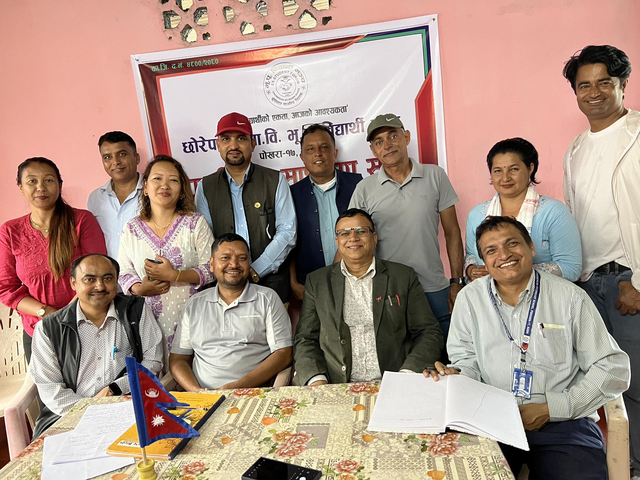 पोखरा । ‘भूपू विद्यार्थीको एकता आजको आवश्यकता’ भन्ने मूलनारा लिई स्थापना भएको पोखरा महानगरपालिका वडा नं. १७ छोरेपाटन माविका पूर्व विद्यार्थीहरुको संस्था छोरेपाटन मावि भूपू विद्यार्थी मञ्चको प्रारम्भिक साधारण सभाले ११ सदस्यीय नयाँ कार्यसमिति चयन गरी शुक्रबार सम्पन्न भयो ।