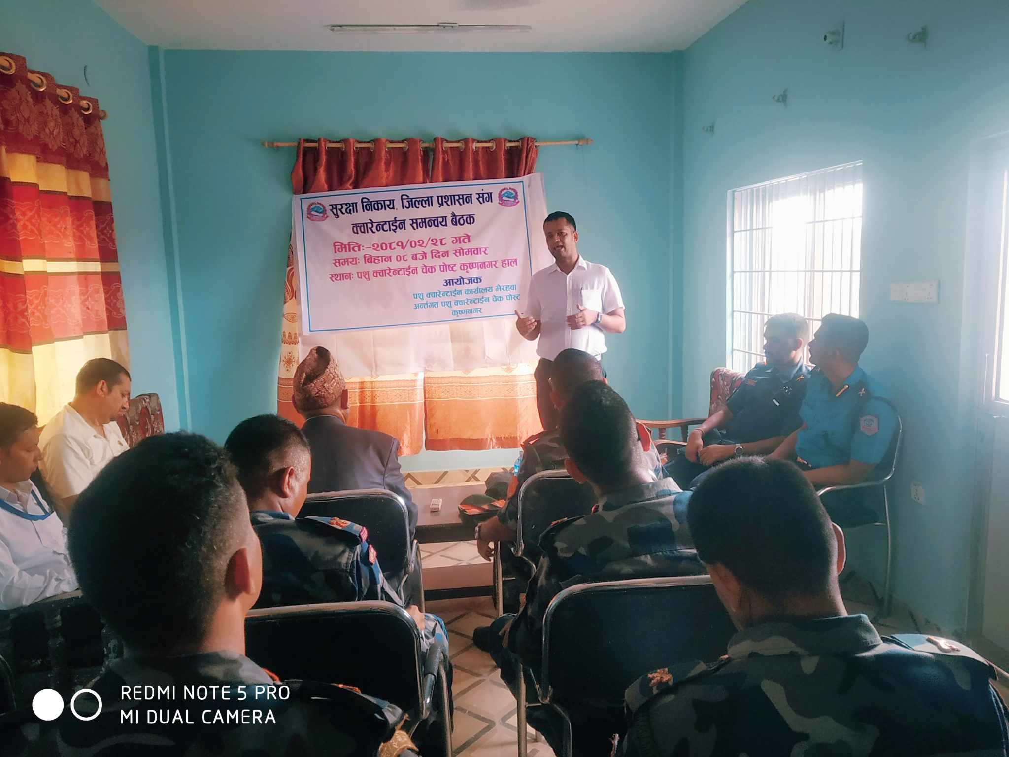 कपिलवस्तु,अजय मिश्र ।कपिलवस्तु जिल्लाको कृष्णनगरमा आज पशु क्वारेन्टाइन कार्यालय भैरहवा अन्तर्गत पशु क्वारेन्टाइन चेक पोष्ट कृष्णनगरको आयोजनामा सुरक्षा निकाय, पत्रकार, प्रशासन, व्यवसायी हरुलाई एक दिने क्वारेन्टाइन सम्बंधि समन्वय बैठक सम्पन्न भएको छ।