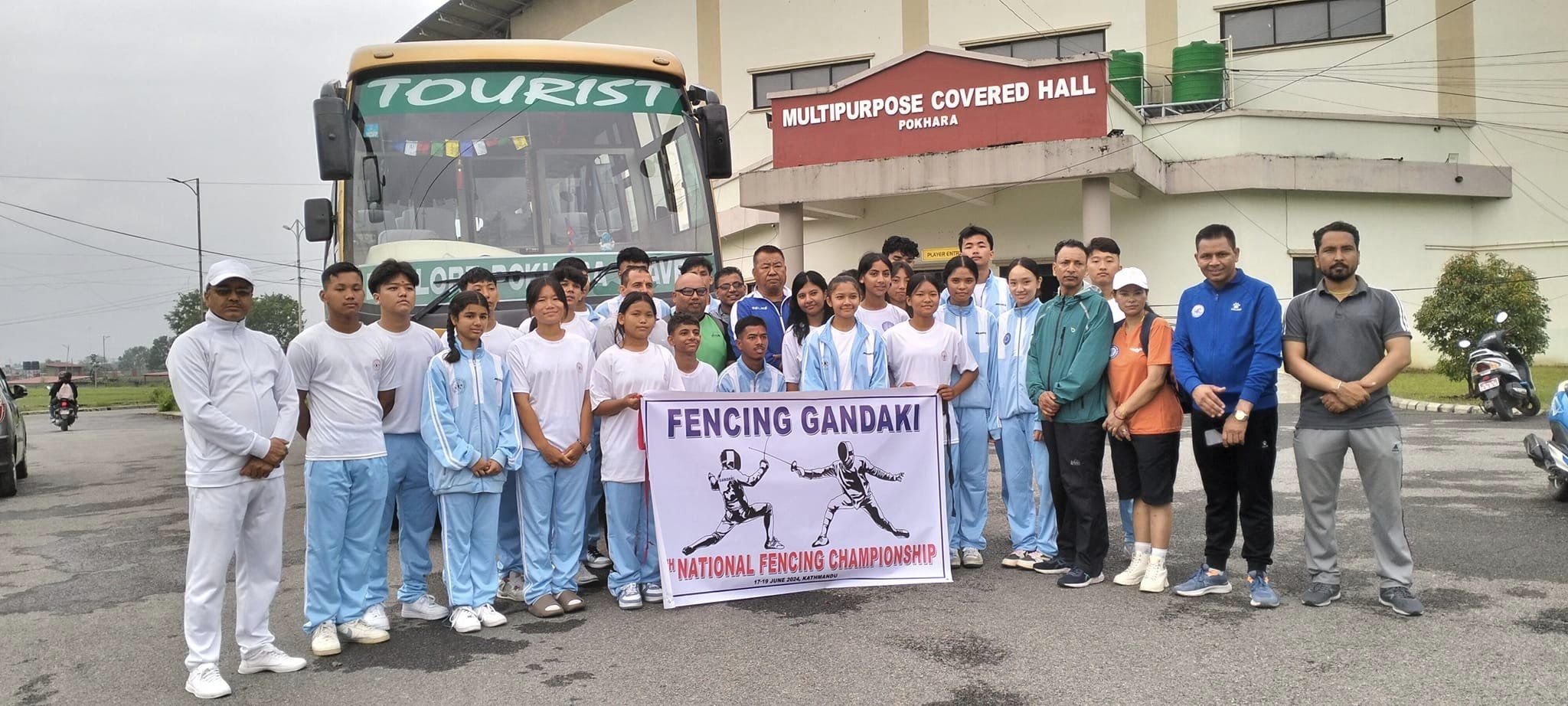 खेलाडीको साथमा गण्डकी प्रदेश फेन्सिङ संघका अध्यक्ष विजय शाही र कार्यसमिति सदय शिव शर्मा तथा कास्की जिल्ला फेन्सिङ संघ अध्यक्ष अमृत पोखरेलको सहभागिता रहेको छ ।