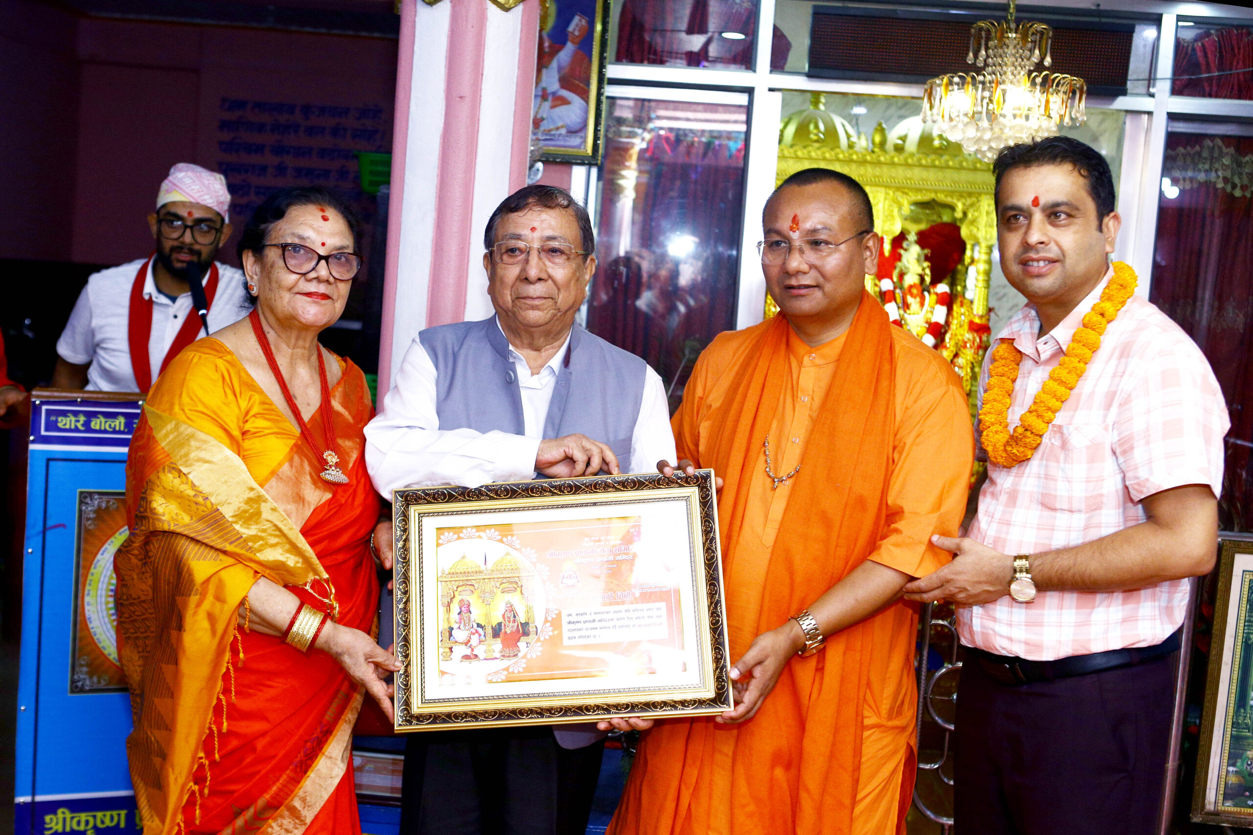 भदौ १० गते श्रीकृष्ण अष्टमी सम्म सञ्चालन हुने श्रीमदवीतक चर्चा एवं श्रीकृष्ण कथा प्रवचनमा श्रीकृष्ण प्रणामी धर्मका धर्म प्रचारक तुलसी स्वरुप महाराज र लिलाम्बर सापकोटाले उपबाचकको रुपमा प्रवचन प्रदान गरिरहेका छनभने भजन संगीतमा संगीतकार बालकृष्ण आचार्य र तवेलामा सुजन बन्जराले साथ दिइरहेका छन ।
