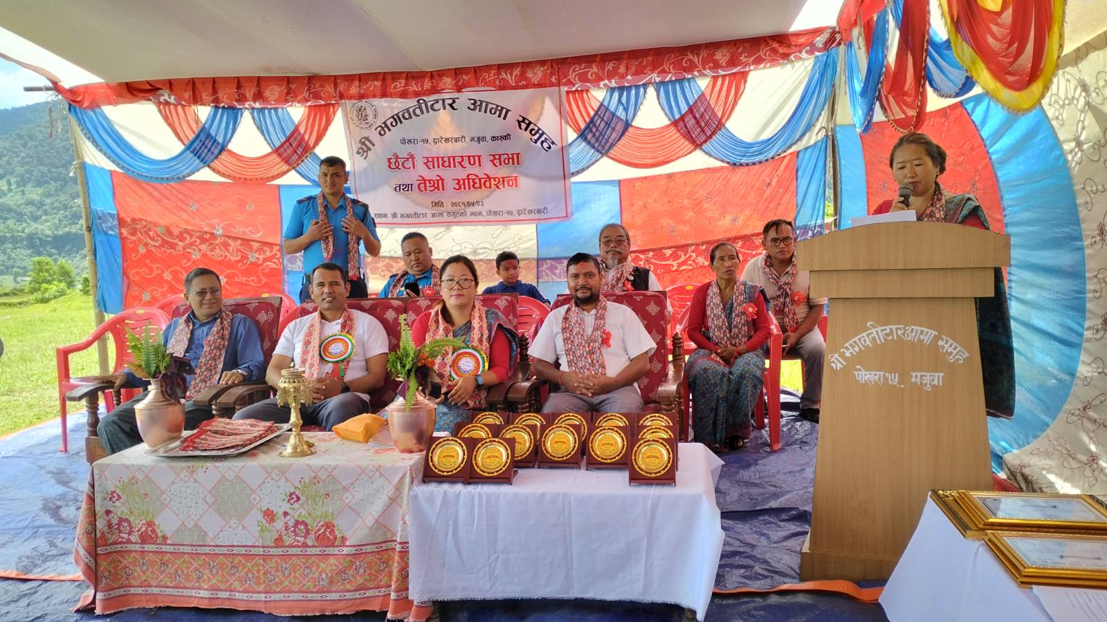 पोखरा । पोखरा महानगरपालिका वडा नं १५ द्वारेखरबारी स्थित श्रीभगवतीटार आमा समुहको छैटौं साधारण सभा तथा तेस्रो अधिबेशनले कुमारी गुरुङको अध्यक्षतामा ९ सदस्यीय नयाँ कार्यसमिति सर्वसम्मत चयन गरेको छ ।