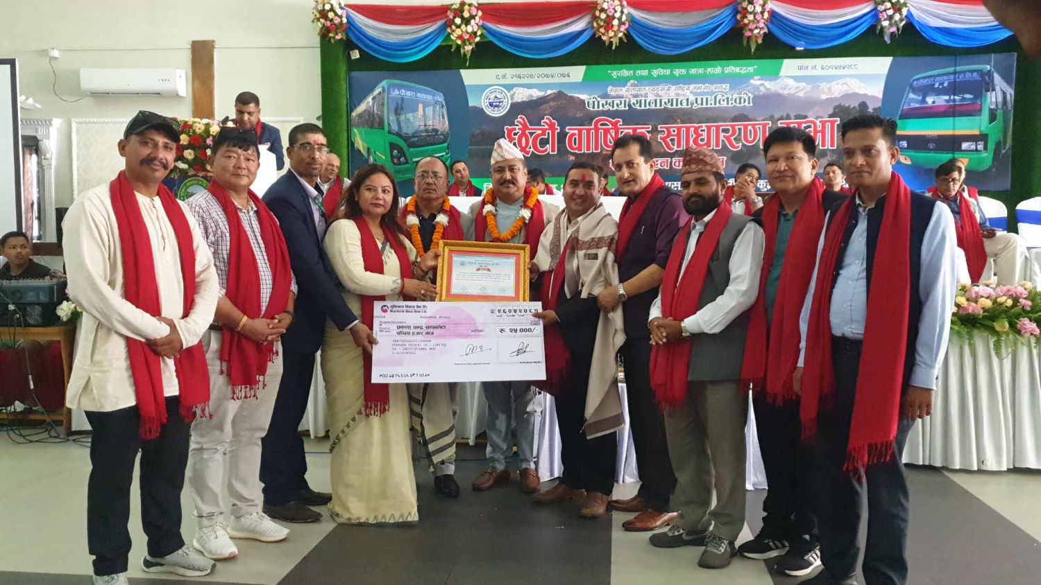 पोखरा यातायात प्रा.लि पोखरा कास्कीले हरेक वर्ष प्रदान गर्दै आएको यो पुरस्कारबाट बुधबार प्रा.लिको छौटौं वार्षिक साधारसभामा उहाँलाई सम्मान गरिएको हो ।