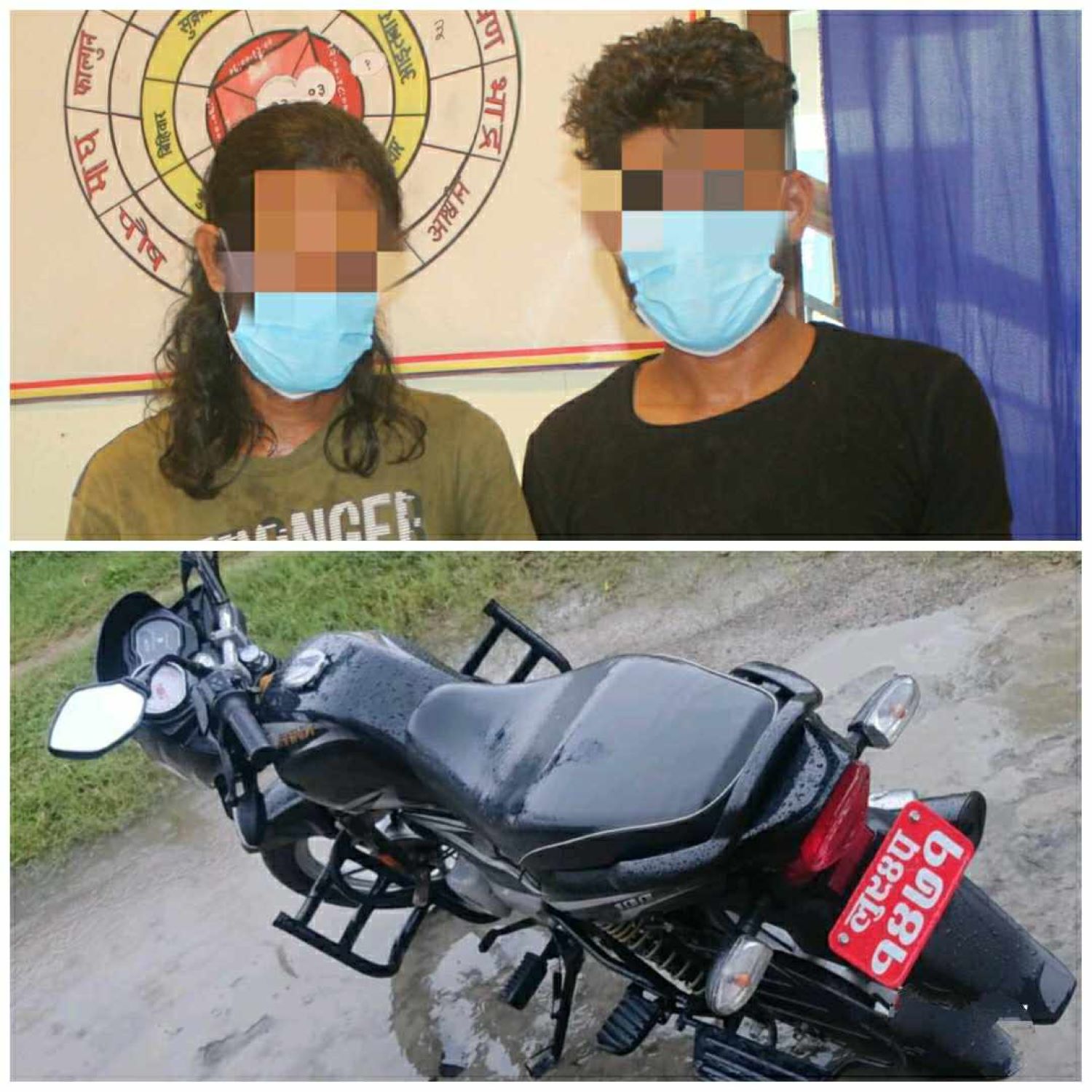 भारत बाट नेपाल छिर्न लागेका लु. ९४ प. १४७१ नम्बर प्लेटको मोटरसाइकिल शंका लागि चेकजांच गर्दा मोटरसाइकिल चालक कपिलवस्तु जिल्लाको शिवराज नगरपालिका वडा नं ६ बस्ने ३६ बर्षिय कलाम अहमद खां र मोटरसाइकिलमा पछाडि सवार शिवराज नगरपालिका वडा नं ६ बस्ने बर्ष २२ का अजय यादव लाई चेकजांच गर्दा अजय यादवको साथ बाट लागु औषध ब्राउन सुगर जस्तो देखिने खैरो धुलो पदार्थ ५०५ मिलिग्राम फेला परेको ईलाका प्रहरी कार्यालय कृष्णनगरका प्रमुख प्रहरी निरिक्षक सुरज खत्रीले जानकारी दिएका छन्।