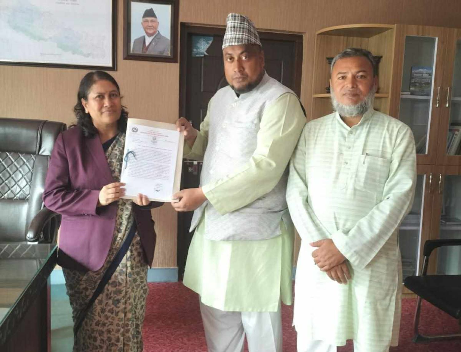 अजय मिश्र, कपिलबस्तु।लुम्बिनी मदरसा बोर्ड नेपालका उपाध्यक्ष मौलाना मशहूद खां नेपालीले केन्द्रीय शिक्षामन्त्रीसँग महत्वपूर्ण भेटघाट गरेका छन्। सो भेटघाटमा उनले शिक्षामन्त्रीलाई मदरसाहरूको समस्या र समाधानका लागि विस्तृत ज्ञापनपत्र पेश गरेका छन्।