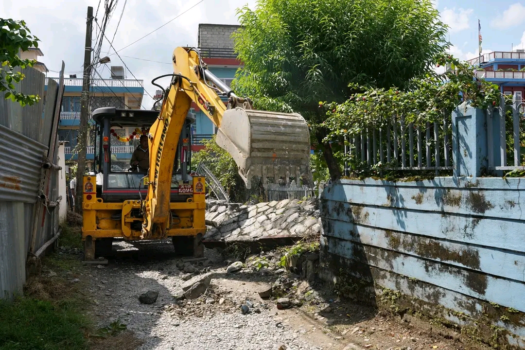 शिशिर पौडेल पोखरा । पोखरा महानगरपालिका वडा नं.८ गिरी डहरमा अतिक्रमित सडक खोलिएको छ । आइतबार पोखरा महानगरपालिकाले नक्सामा रहेको बाटोमा लामो समयदेखि अतिक्रमण गरी निर्माण गरिएको करिब २ सय मिटर क्षेत्रको संरचना हटाएको हो । गिरी डहरमा २०३२ सालको नापी नक्सामा समेत छुट्टिएको बाटो व्यक्तिले अतिक्रमण गरी आवतजावत अवरोध गर्नुका साथै घरको कम्पाउन्ड निर्माण गरेका थिए । जसका कारण बाटो अतिक्रमणमा परेको थियो भने, बाटोको भागमा पर्खाल निर्माण गरिएको थियो । नक्सामा बाटो रहेको, सहज निकास र दमकल तथा एम्बुलेन्स समेत छिर्न नसक्ने अवस्था रहेपछि नियमानुसार बाटो मिचेर निर्माण गरिएको संरचना हटाउन निर्देशन गरिएको नगर प्रमुख धनराज आचार्यले बताउनुभयो ।