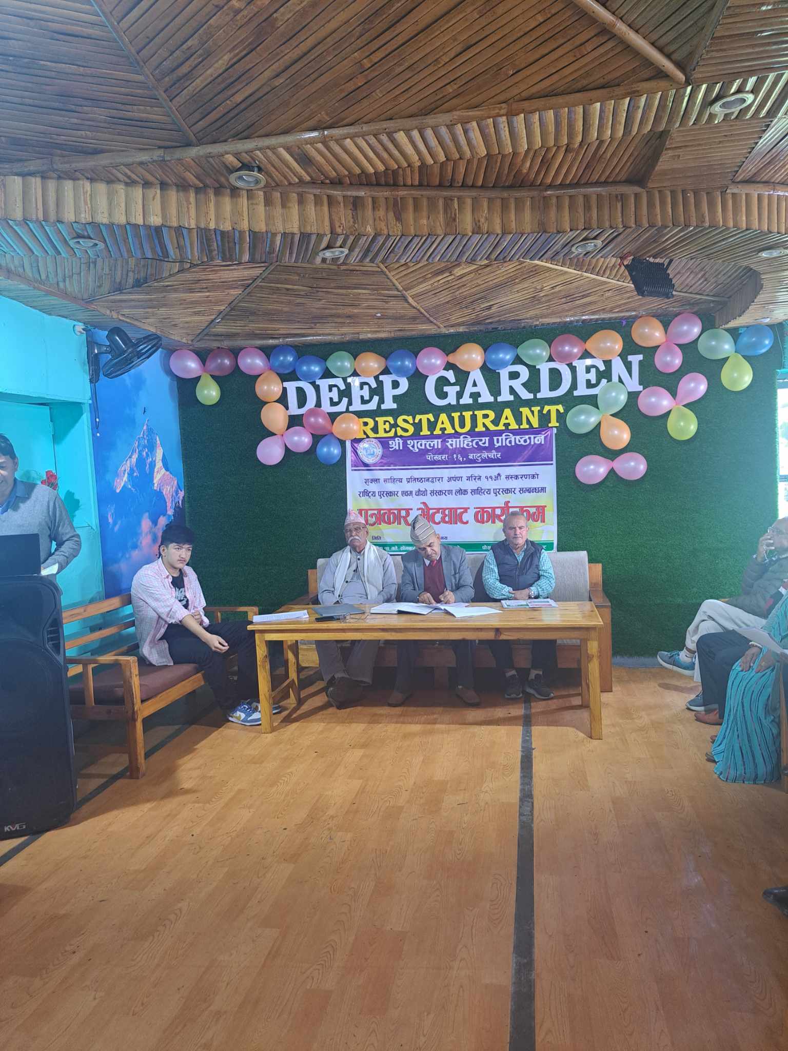 शिशिर उजाड पोखरा । यस वर्षको शुक्ला साहित्य राष्ट्रिय पुरस्कार साहित्यकार एवं भाषविद् मुकुन्द शरण उपाध्यायलाई प्रदान गरिने भएको छ ।जनस्तरवाट रकम संकलन गरी शुक्ला साहित्य प्रतिष्ठान बाटुलेचौरद्वार स्थापित सो पुरस्कार भाषाविद् उपाध्यायलाई प्रदान गरिन लागेको हो । प्रतिष्ठानले सोमवार पोखरामा पत्रकार सम्मेलनको आयोजना गरी नगद ५५ हजार ५ सय ५५ रुपैयाँ राशीको पुरस्कार उपाध्याय र लोककवि चेत वहादुर वरुवाल लोक साहित्य स्मृति पुरस्कार संस्कृतिकर्मि प्राडा कुशुमाकर न्यौपानेलाई प्रदान गरिने प्रतिष्ठानका सचिव दिपेन्द्र वाँनियाले जानकारी दिनुभयो । लोक साहित्य पुरस्कारको राशी १५ हजार ५ सय छ ।
