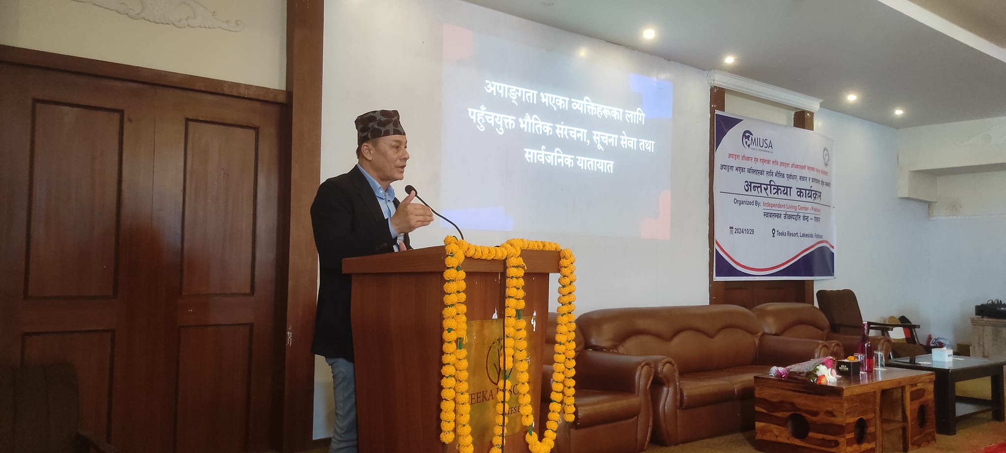 गण्डकी प्रदेश सभा सदस्य तथा नेकपा एमालेकी सचेतक देवका पहारीले सामाजिक क्षेत्रका हरेक विषयमा अपाङ्गतामैत्री वातावरण बनाउन आवश्यक रहेको उल्लेख गरिन् । कार्यक्रममा गण्डकी प्रदेश सभा सदस्य कुशुमबुढा मगर, राष्ट्रिय मानव अधिकार आयोगका प्रदेश प्रमुख नितु गर्तौला, इन्सेक गण्डकी प्रदेश संयोजक शिव खकुरेल, सामाजिक विकास युवा तथा खेलकुद मन्त्रालयका महिला तथा सामाजिक शाखा प्रमुख मुना अधिकारीले बालेका थिए ।