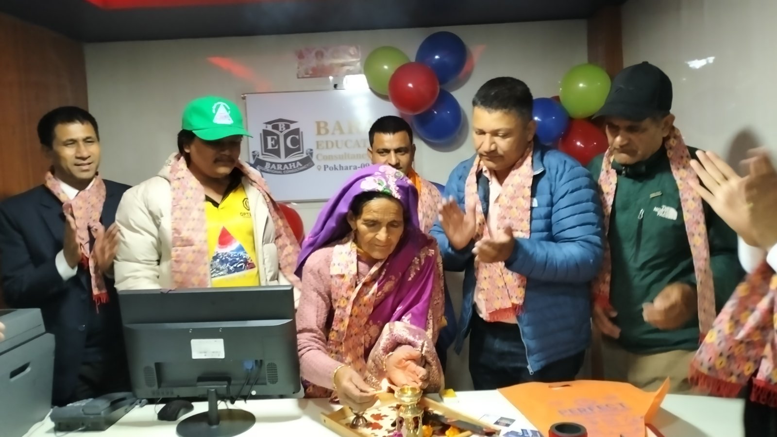 बराह एजुकेशन कन्सल्टेन्सी प्रा.लि.का संचालन सन्तोष कुइकेलले आफ्नै आमा विष्णु माया कुइकेलले रिबन काटेर छोराको व्यवसायको शुभारम्भ गर्दै छोराको व्यवसाय राम्रो होस् भन्दै शुभकामना व्यक्त गरेकी थिइन् ।